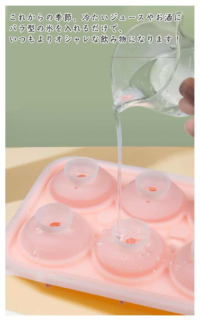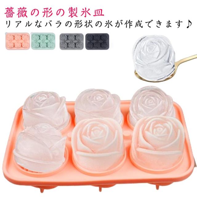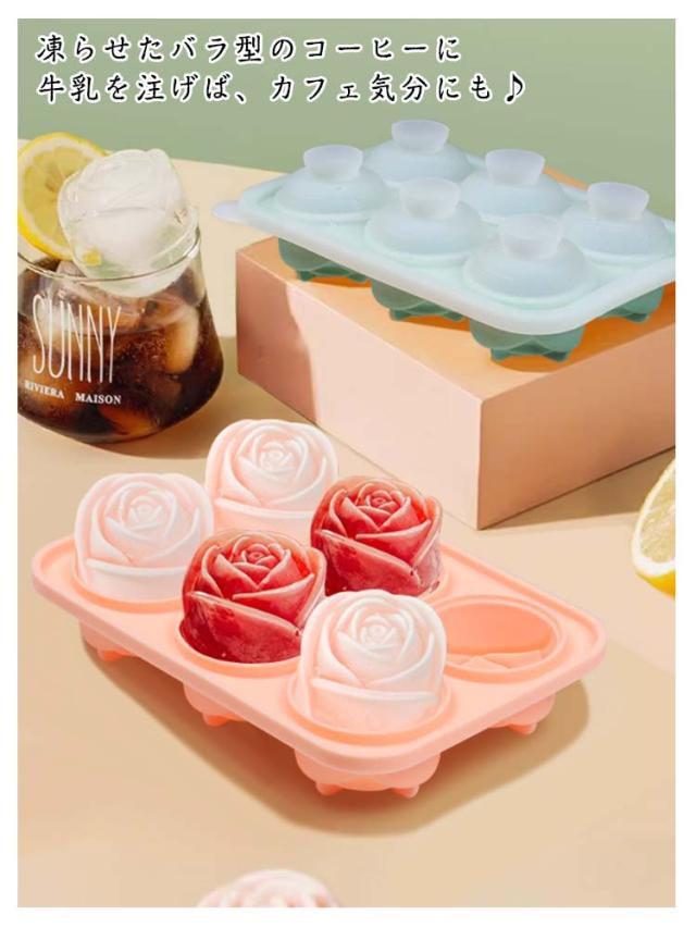 製氷皿 製氷器 バラ型 2点セット 6個取り ふた付き 立体 シリコン型 DIY 花 ローズ アイスキューブ 氷 製菓道具 漏れ防止 ジュース アイスコーヒー ビール 梅酒 ウィスキー 料理教室