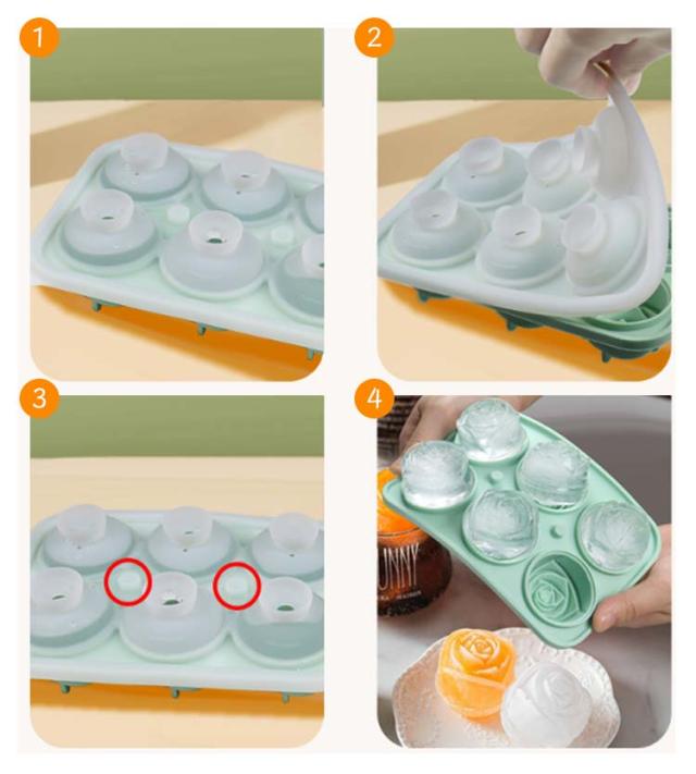 | ・薔薇の形の製氷皿 ・リアルなバラの形状の氷が作成できます♪ ・これからの季節、冷たいジュースやお酒にバラ型の氷を入れるだけで、いつもよりオシャレな飲み物になります! ・凍らせたバラ型のコーヒーに牛乳を注げば、カフェ気分にも♪ ・柔らかいシリコンなので、取り出しやすい。 ・冷凍庫で常時凍らせておくと繰り返し使えます。 ・ムースやゼリーはもちろん、ケーキなどの型にも! ・普段使いはもちろん、パーティーなど人が集まる場所で出せば盛り上がります! | |