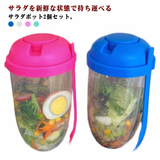 | サラダを新鮮な状態で持ち運べるサラダポット2個セット。 サラダやフルーツ入れとしてはもちろん、小腹がすいたときのスイーツ入れにも使えるサイズです。 ドレッシングケースとフォーク付き、いつでもどこでもサラダを美味しく食べられます♪ 透明で中心がほどよく透けて見えます。 本体容量も1000mlと大容量なので、たくさん野菜が摂れてサラダだけでも満足できるサイズです。 いろんなヘルシーで美味しいメニューが楽しめて、サラダの持ち運びに便利なアイテムです。 | |