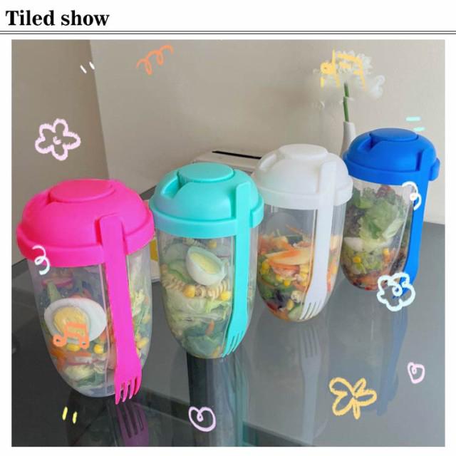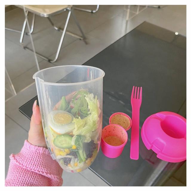2個セット サラダカップ 弁当箱 サラダポット ドレッシングケース付き フォーク付き クリア ランチボックス サラダカップ サラダ容器 一段 お弁当 弁当 サラダ 保存容器 フルーツケース 軽量 持ち運び 通勤 通学 おしゃれ ギフト