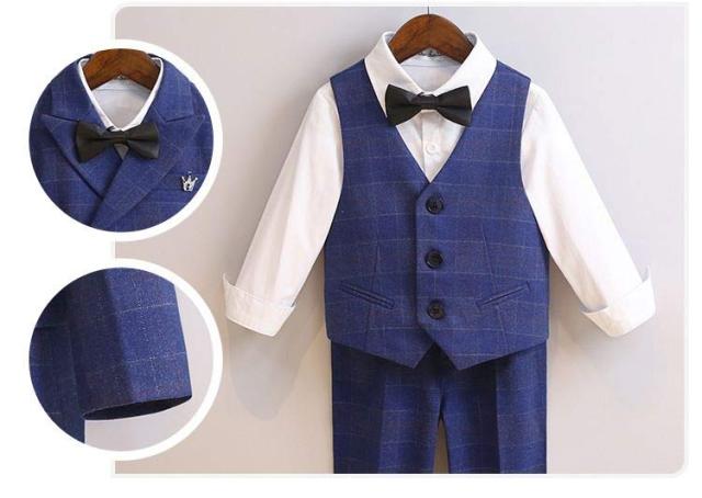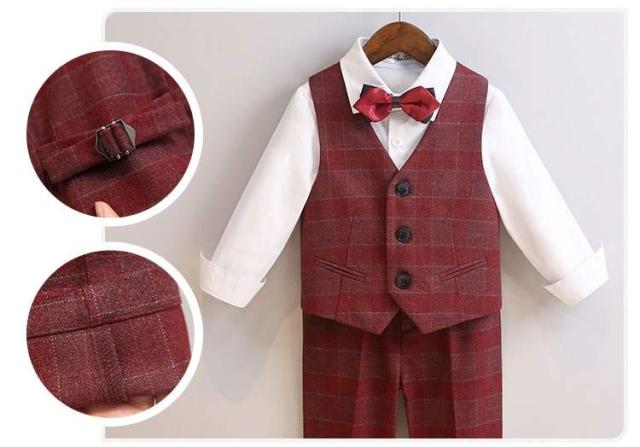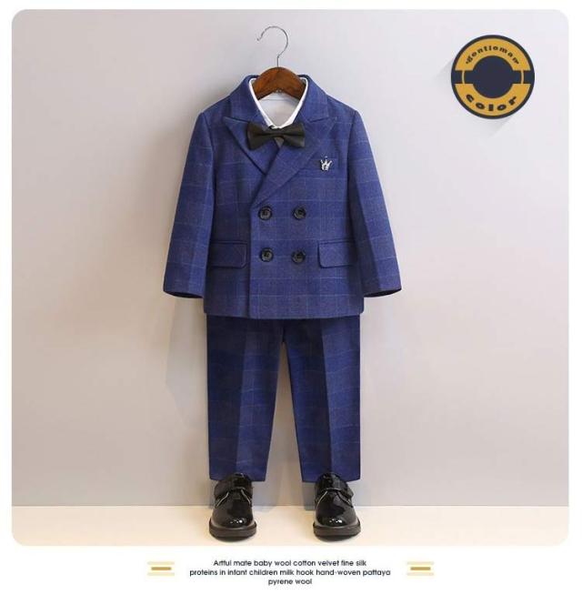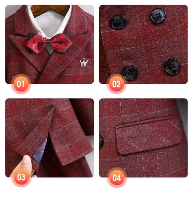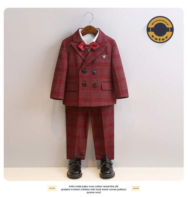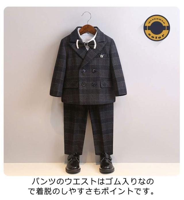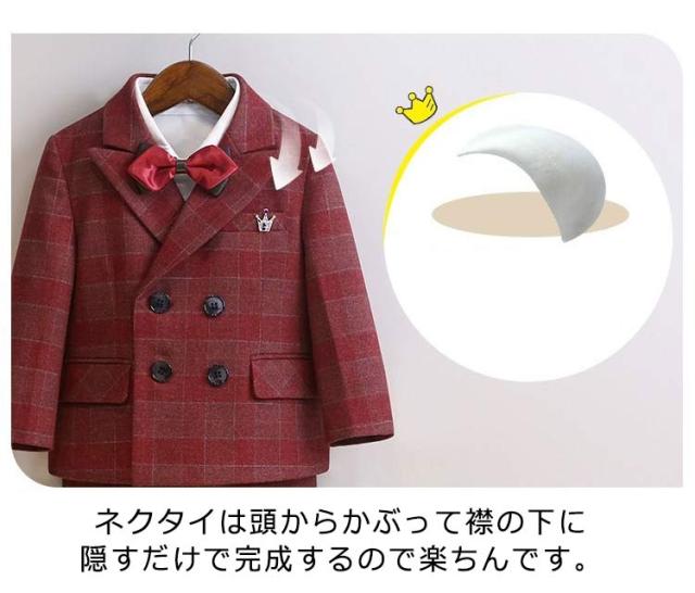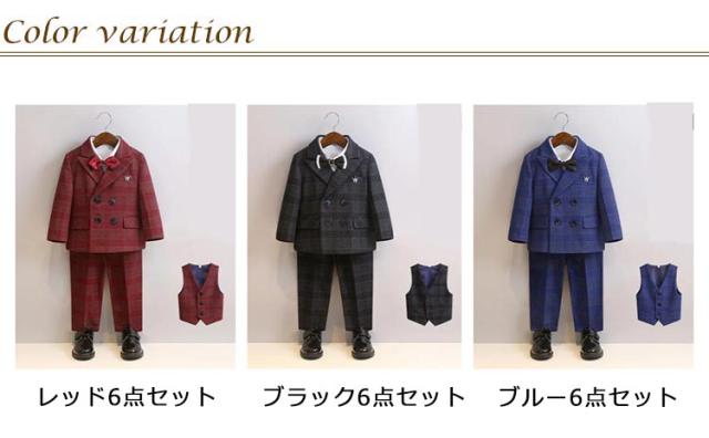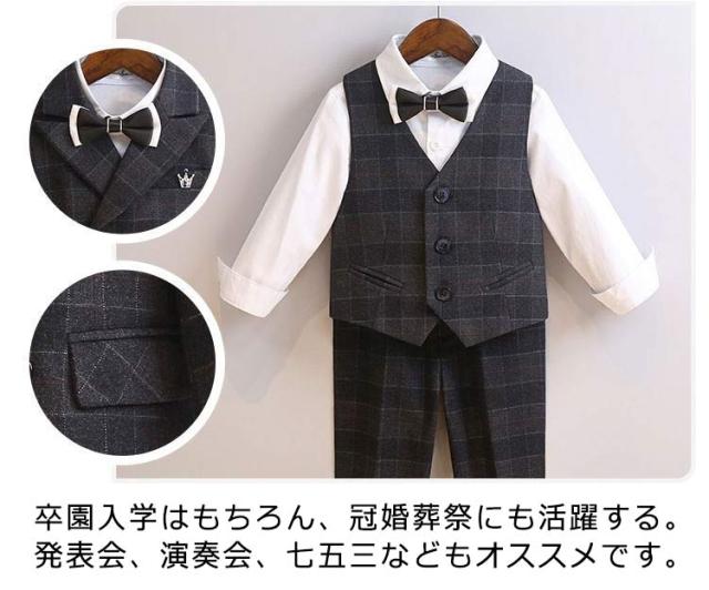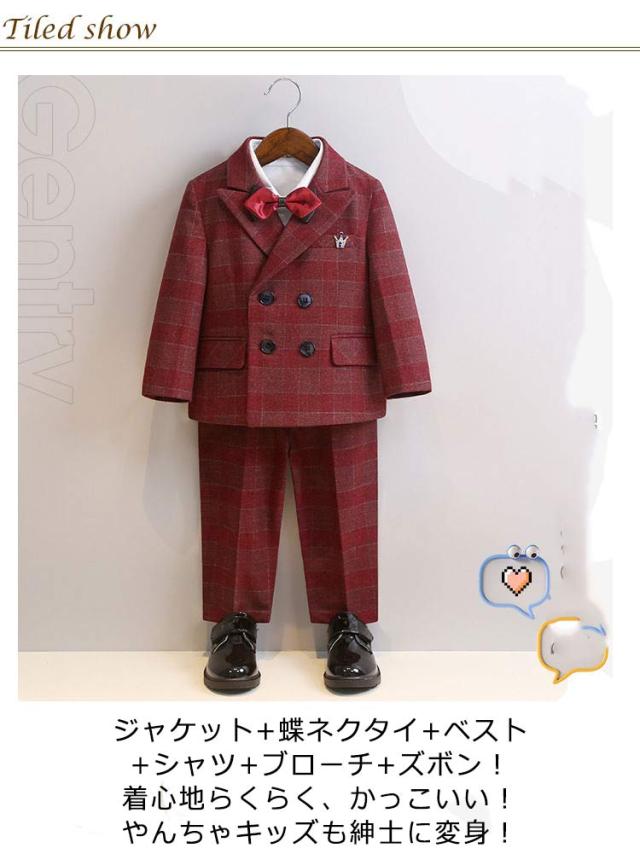 子供スーツ 6点セット フォーマルスーツ 男の子 フォーマル ジャケット ブローチ シャツ ロングパンツ 蝶ネクタイ ベスト チェック柄 スーツ一 フォーマルウェア セットアップ 卒業式 入学式 子供服 入園式 卒園式 七五三 結婚式