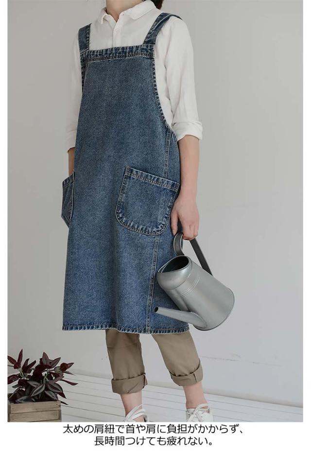 | さっとかぶるだけ♪楽チンでおしゃれなデニムエプロン。 バッククロスで紐を結ばず着脱簡単。 太めの肩紐で首や肩に負担がかからず、長時間つけても疲れない。 斜めの大きめポケットがアクセントに。スマホなど小物をすっぽり入れるから機能性も◎ 老若男女問わないおしゃれなデザイン、年齢性別問わず誰でも使えるデニムエプロン。 厚みのあるしっかりしたコットンデニム素材、耐久性も◎ | |