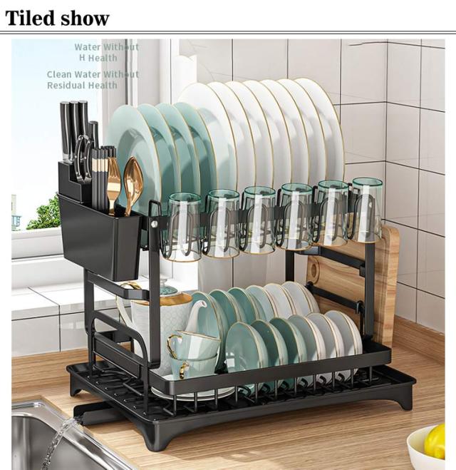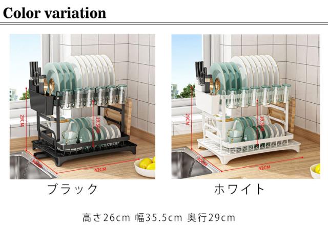 | 【多機能水切りラック】 2段式食器ラックですので、キッチンのスペースが充分に利用できます。茶碗、箸、スプーン、カップ等を一括に収納できます。 【排水便利・調整可能】 水が流れるトレーと排水口が付いているので、トレーに水が貯まりません。排水時でトレーの水捨て不要でシックへ向かって緩やかに水滴を促します。360度回転できる排水パイプにより、シンクがどこでも円滑に排水できます。 【組立簡単・工具不要】 すべての部品は取り外し可能、女性一人でも簡単に完成できます。 | |