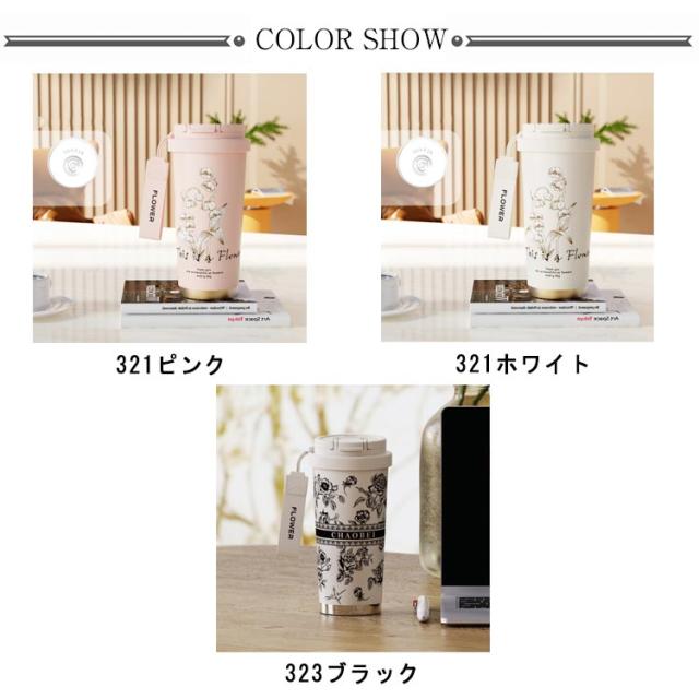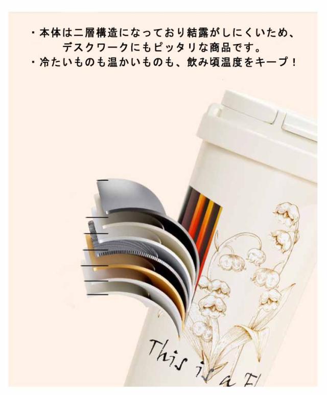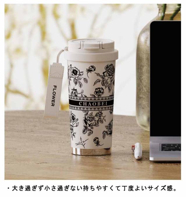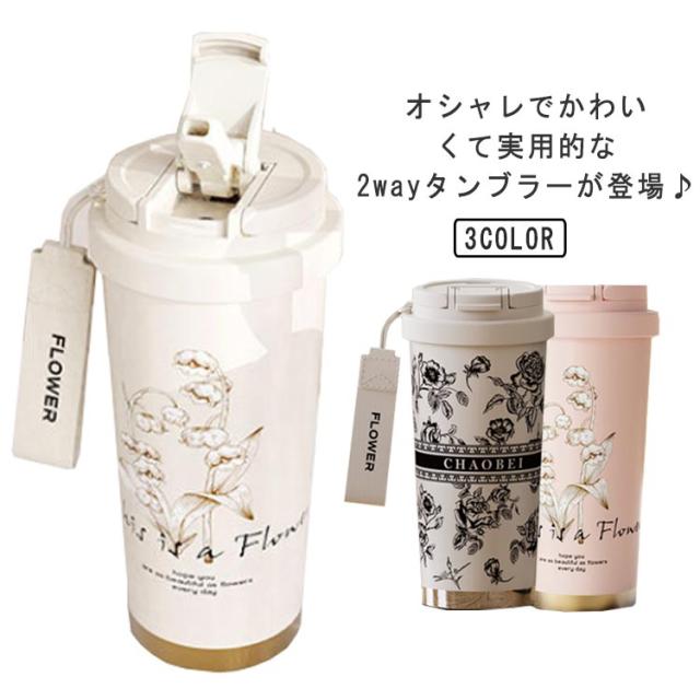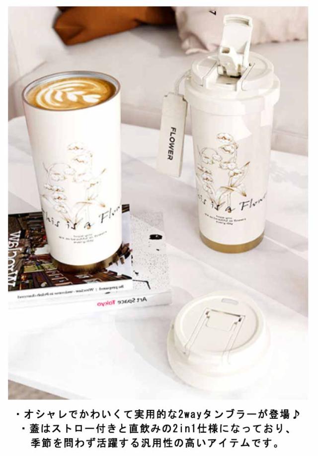 タンブラー 水筒 マグボトル 2way 保温 保冷 550ml セラミックコーティング 茶こし付き 魔法瓶 直飲み ストロー付き 蓋付き 真空断熱 大容量 持ち運び 漏れ防止 炭酸 コーヒータンブラー ストラップ付 花柄 おしゃれ ドライブ 車