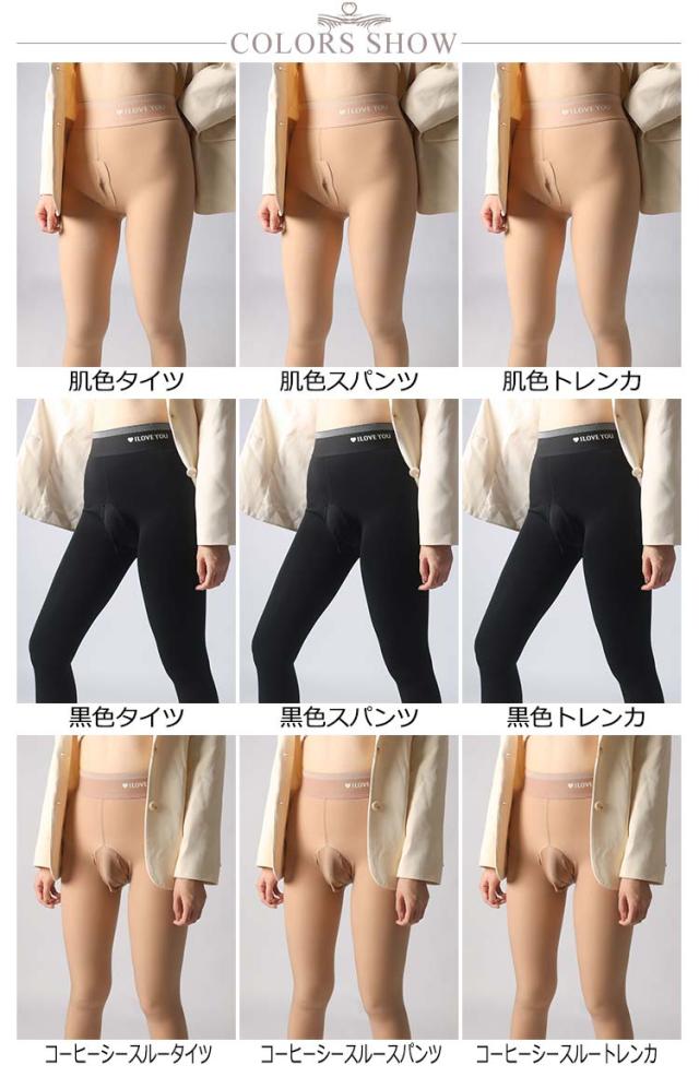 | 厚手 タイツ/トレンカ/スパンツ 裏ボアであたたかいメンズ用 インナーとしてはもちろん、女装するときにもぴったりです。 股部分の形状と、それぞれつま先あり、9分丈からお選びいただけます。 | |