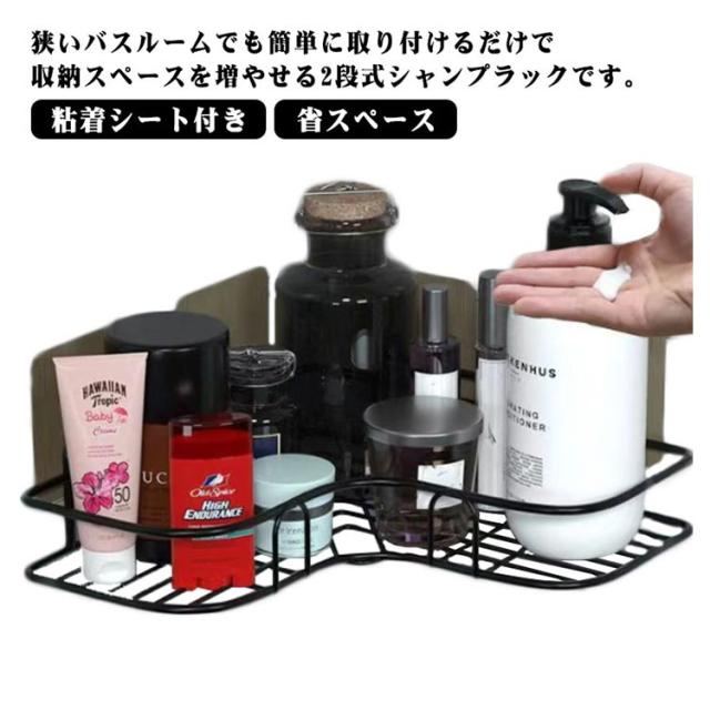 | 狭いバスルームでも簡単に取り付けるだけで収納スペースを増やせる2段式シャンプラックです。 バスルームが空いているスペースを有効活用して、シャンプーやボディソープなどをまとめて収納できます。バスルームでも収納スペースをたくさん増えます。 穴を開けず、強力な粘着力で壁などにしっかり貼ることができ、取り付け位置を自由に決められるため、ボトル類を使いやすい位置に配置できます。 2個セットなので、用途に合わせた高さで自由に設置します。 スチールで作られたシャンプーラックので、湿気や水気が多いバスルームに設置しても錆びにくい、耐久性もあり、長く使えます。お風呂場での使用だけではなく、水回りでも使いやすいて、水を溜めずに排出して衛生です。 お風呂場はもちろん、洗面所、キッチンなども良い活躍します。 | |