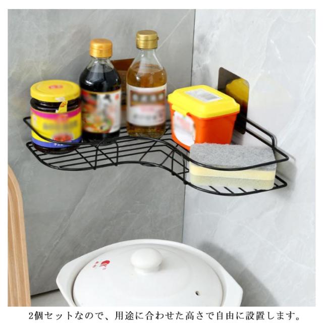 【同色2点セット】お風呂 ラック シャワーラック 粘着シート付き マルチラック コーナーラック 三角 お風呂 バスルーム キッチン 省スペース 壁面収納 隙間収納 洗面所 スチール シンプル ブラック ホワイト 水切りラック バス用品 キッチン用品 整理棚 ラック