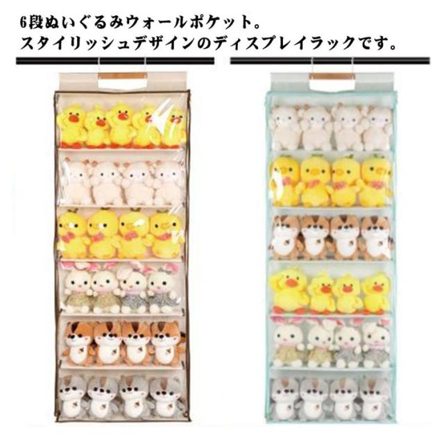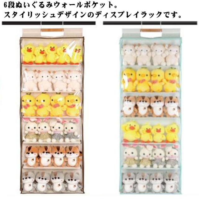 ぬいぐるみウォールポケット ウォールポケット 6段収納ケース ディスプレイ 収納ボックス コレクションケース コレクション ぬいぐるみ 収納 見せる収納 小物 ドア掛け収納式ポケット 透明 壁掛け収納 クリア 吊り下げ収納 収納ケース