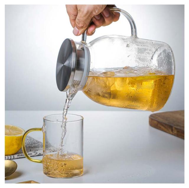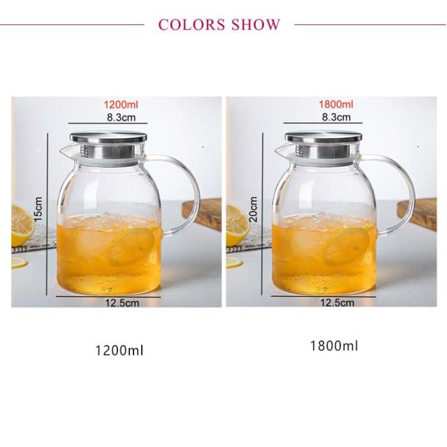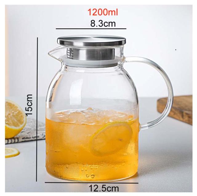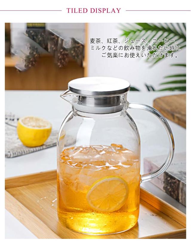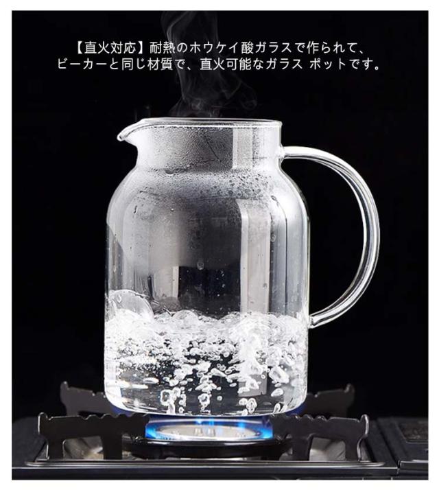 ガラスピッチャー 耐熱 1200ml 1800ml ガラスポット ガラスケトル 直火 直火電気ケトル対応 ティーポット 耐熱ガラス 大容量 ホウケイ酸ガラス 冷水筒 冷水ポット 麦茶入れ 紅茶ポット ステンレス茶こし一体型蓋 洗いやすい 水だし 水差し