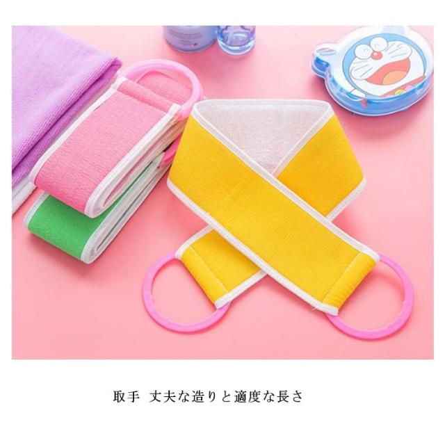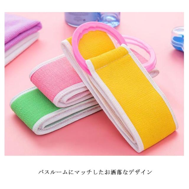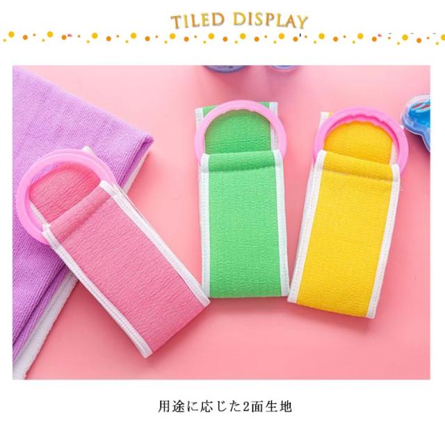 | 綺麗なお肌のお手伝い 垢すりベルト 用途に応じた2面生地 取手 丈夫な造りと適度な長さ バスルームにマッチしたお洒落なデザイン | |