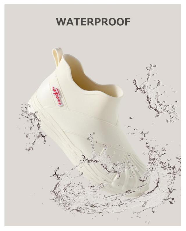 レインブーツ レディース 防水スリッポン 防水シューズ おしゃれ 晴雨兼用 ショートブーツ レインシューズ レディーススリッポン 裏起毛 コックシューズ 厨房靴 痛くない 完全防水 防滑ソール 韓国 冬 通勤 軽量 柔らかい 雨靴 梅雨対策 オールシーズン 23-25cm