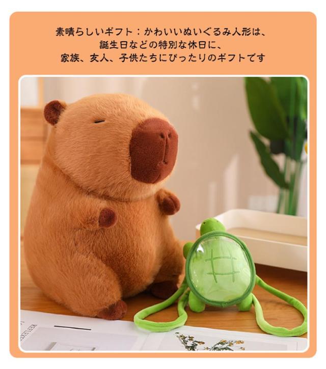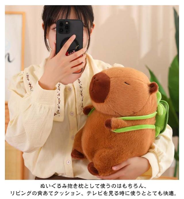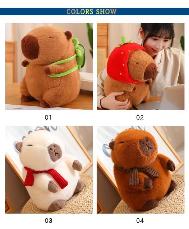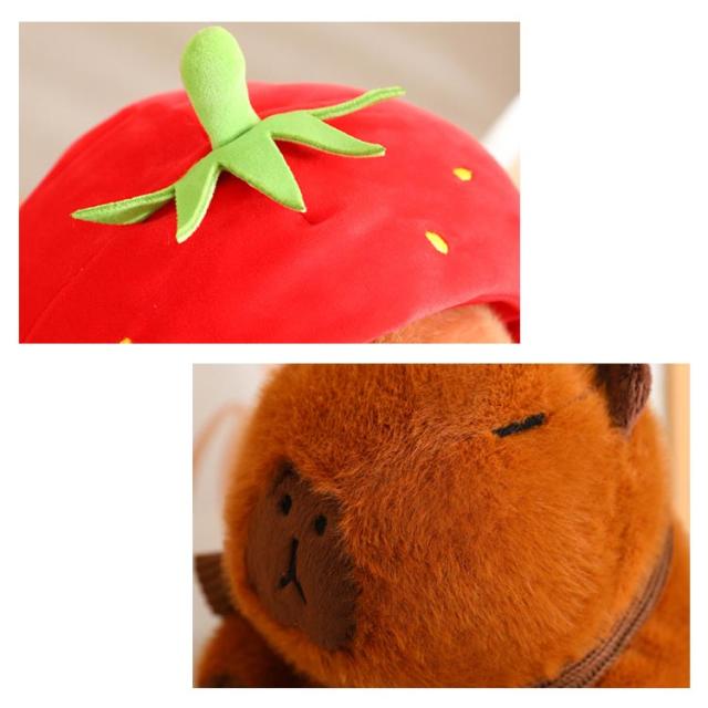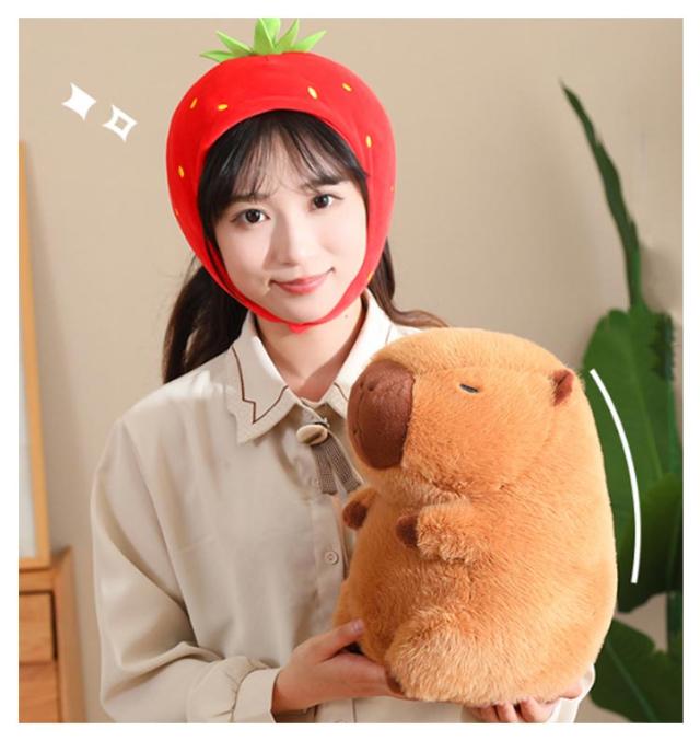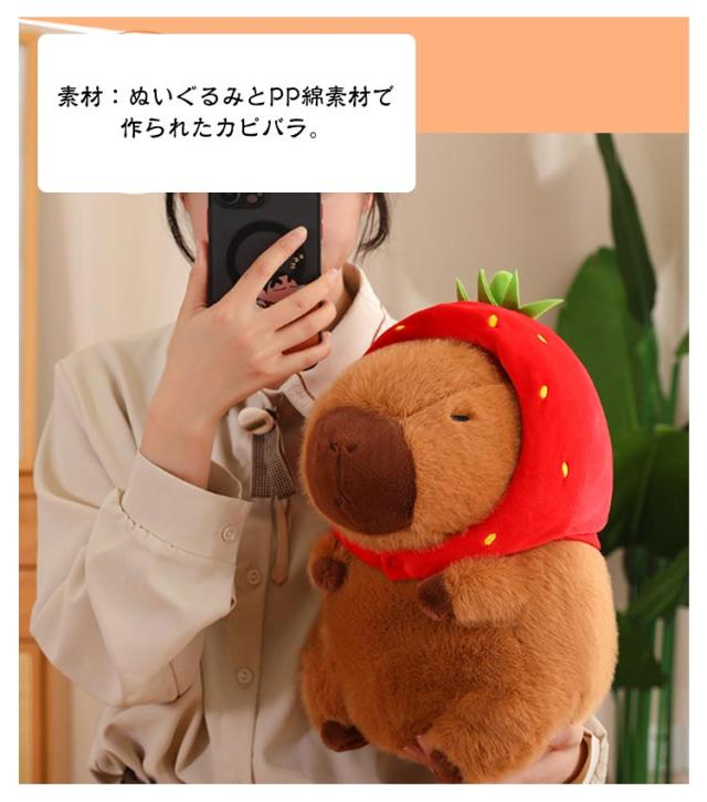 カピバラ ぬいぐるみ 動物 抱き枕 可愛い プレゼント 誕生日 子供 友達 ギフト かぴばら かわいい もこもこ インテリア 店飾り 癒し カメカバン付き いちご帽子付き ふわふわ もっちり 人気 25cm 35cm バレンタインデー