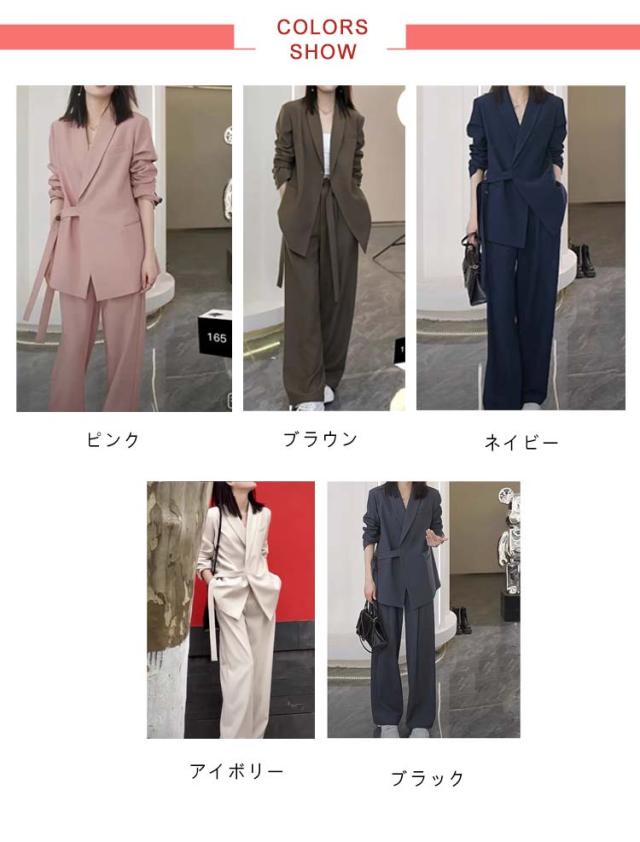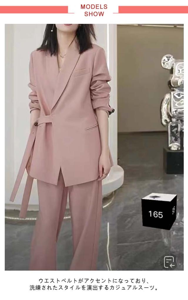 | ウエストベルトがアクセントになっており、洗練されたスタイルを演出するカジュアルスーツ。 【ジャケット+パンツ】の2点セットスーツ ゆったりとしたシルエットでお腹周りもヒップも隠れて、体型カバーしつつきちんと感と女性らしさを持ち合わせたジャケット。 パンツはスタイルをすらっときれいにみせてくれるワイドシルエットで美脚効果も期待。 高級感のある生地とこだわりのディテールが、大人の抜け感を演出してくれます。 セットアップが可能だから、お仕事からプライベートまで着回し力も◎ | |