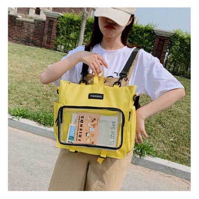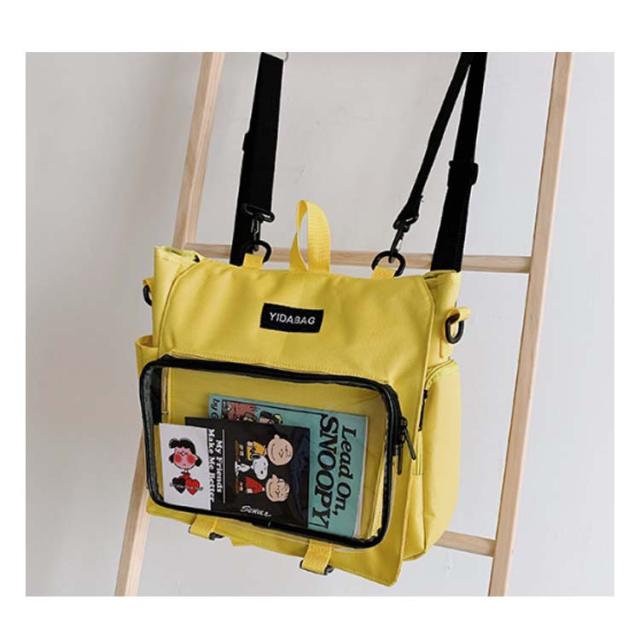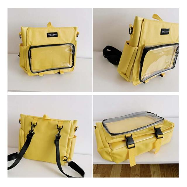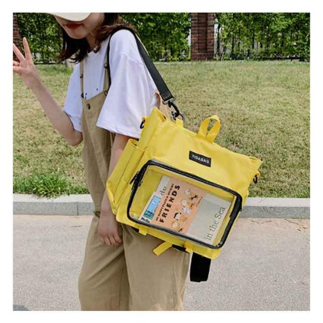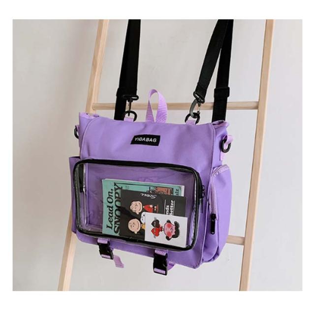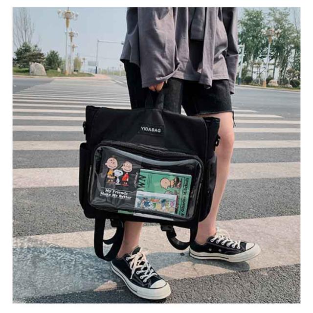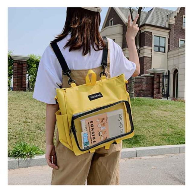 | ショルダーとリュックサックの4wayで使える嬉しい新作が登場! シンプルなデザインと使い勝手の良さによって、男女兼用、流行りに敏感な学生とか、誰でも適用します。 バッグの前面の透明ポケットで見せたいアイテムで自分の好みにアレンジできるトートバッグです。 好きな芸能人やアニメキャラの写真、缶バッジ、ストラップ、ぬいぐるみ、萌グッズなど入れて一目瞭然です。 ※このリンクはバッグだけ売っています。ストラップや飾り物は贈り物ではなく、自分で買いますよ。 | |