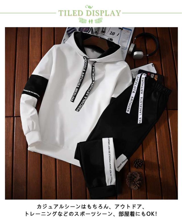 | トレンド感あるデザインで仕上げたスウェットパーカーセットアップ。 洗練された美シルエットが大人のおしゃれをアピールし、スポーツから寝巻着まで様々なシーンで大活躍。 優れた伸縮性、滑らかな肌触りでストレスなく1日中快適に過ごせる生地を採用。 パンツのウエストはゴム&ひも付き、体型に合わせてどなたにもご利用頂けるタイプです。 カジュアルシーンはもちろん、アウトドア、トレーニングなどのスポーツシーン、部屋着にもOK! 20代から50代まで年齢幅広くお使いいただけます! | |