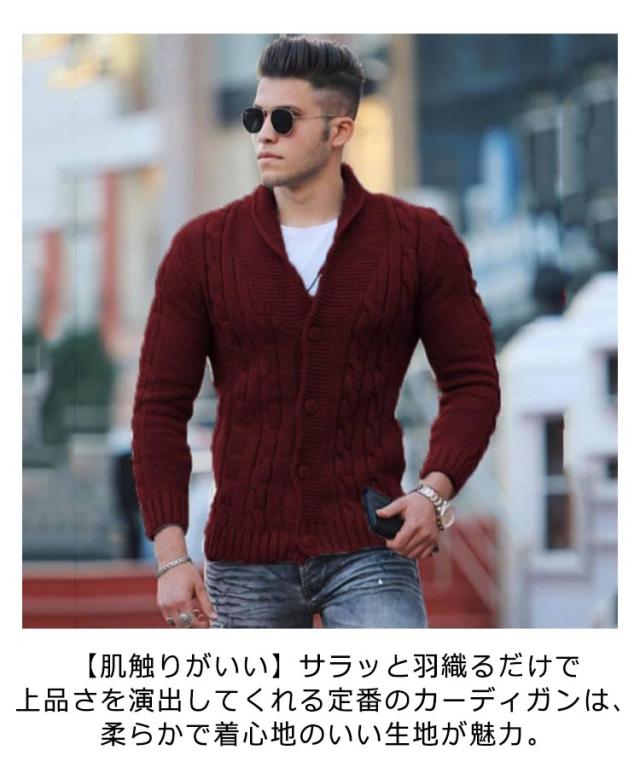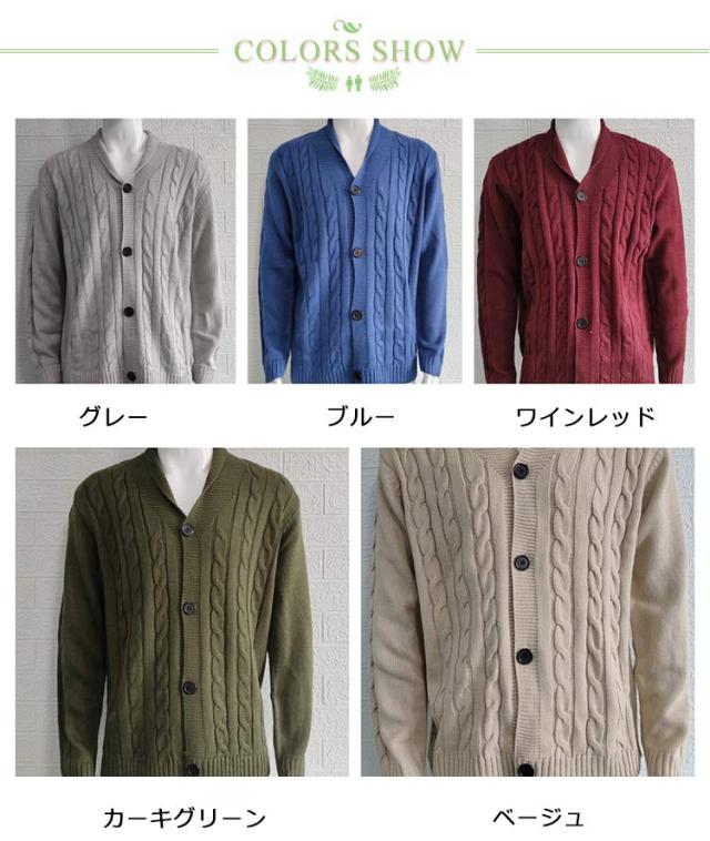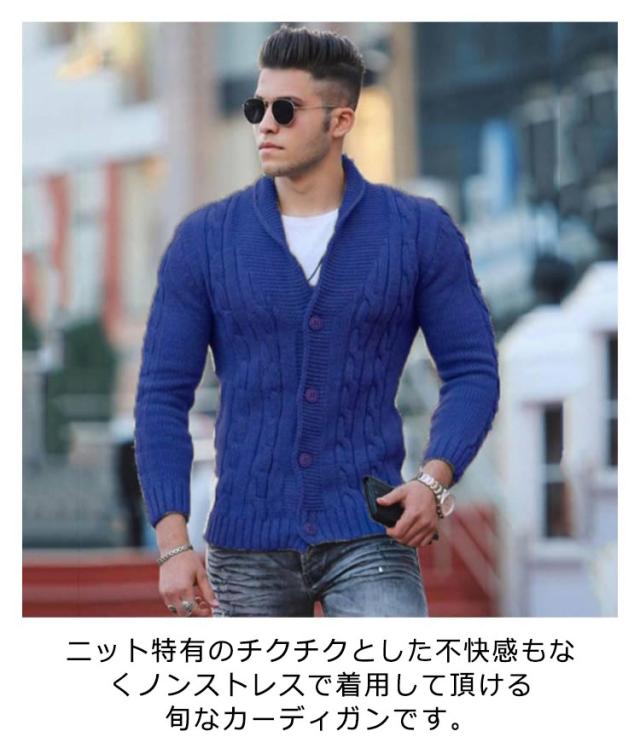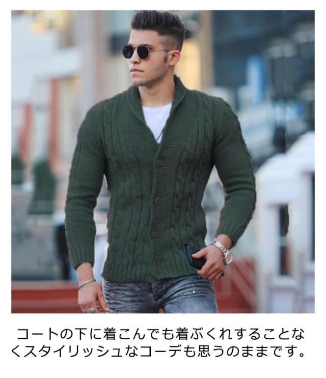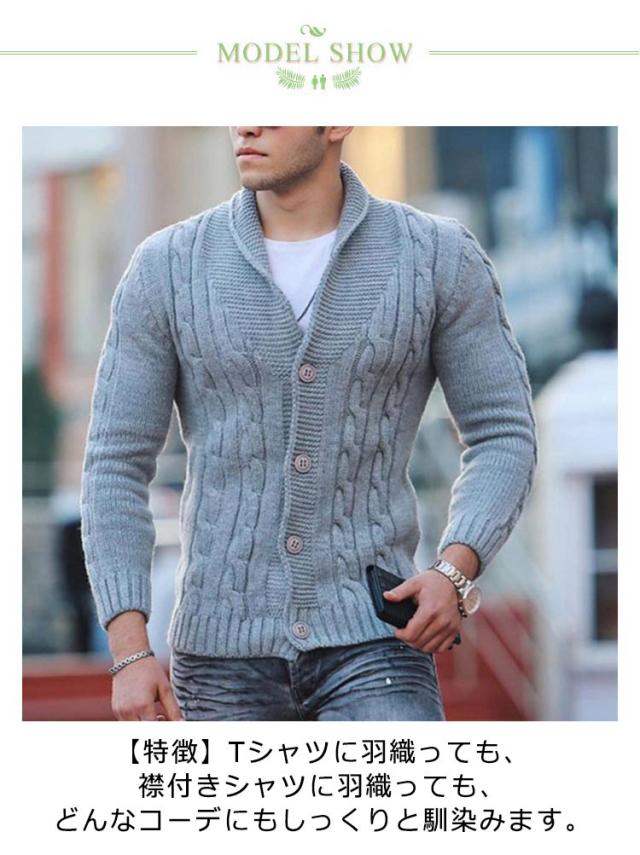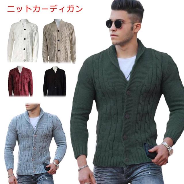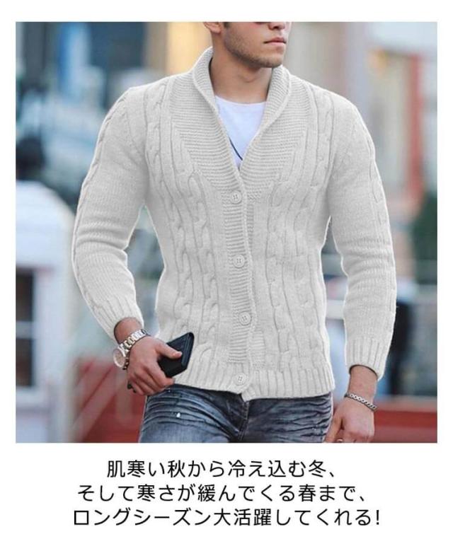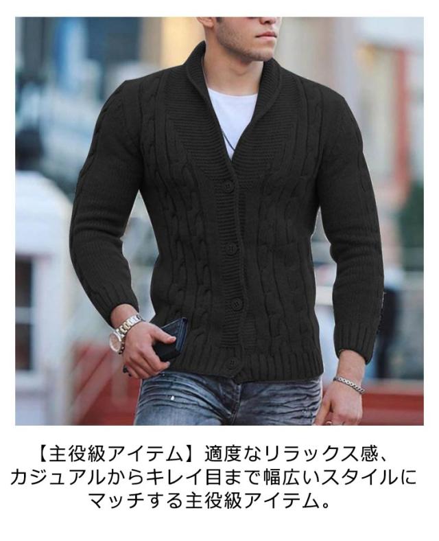 カーディガン ざっくり 無地 カーディガン ニット ケーブル編み 大きいサイズ カーデ メンズ 長袖 ボタン カジュアル 羽織り ショールカラー 秋 冬 服