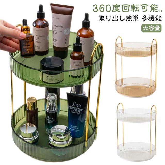 キッチン収納 コスメ収納 360°回転 透明 洗面所収納ボックス メイクボックス 小物収納 化粧台 大容量 コスメ収納 多機能 コスメボックス 2層 卓上収納 調味料置き 台所収納 調味料ケース 省スペース 整理 便利グッズ おしゃれ 取り出し簡単