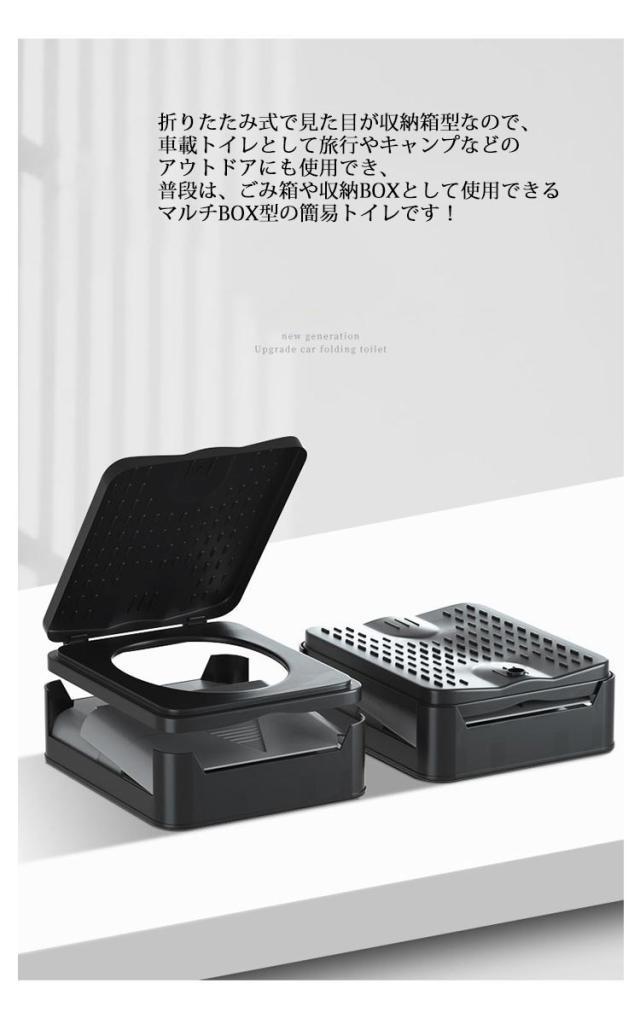 | 便座一体型で子どもからお年寄りまで安心してご利用いただけます。 災害、非常用としてはもちろん、介護用トイレ・キャンプ・車用トイレ・登山・釣りなど幅広いシーンで活躍♪ 折りたたみ式で見た目が収納箱型なので、 車載トイレとして旅行やキャンプなどのアウトドアにも使用でき、 普段は、ごみ箱や収納BOXとして使用できるマルチBOX型の簡易トイレです! 見た目がトイレに見えないので、 万が一に備えておひとついかがでしょうか? 備えあれば憂いなしです☆ | |
