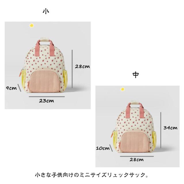 | 【商品名】キッズリュック 【サイズ】サイズ表 【素材】キャンバス生地 【特徴】 小さな子供向けのミニサイズリュックサック。 側面にはペットボトルを収納できるポケット付き。 お出かけやお散歩にもぴったり! ちょっと引っ掛けるのに便利な持ち手付き。 ショルダーベルトは長さ調節可能です。 メイン収納部分が大きく開くので荷物の出し入れが楽々。 大きな前ポケット付きで機能性もバッチリ! | |