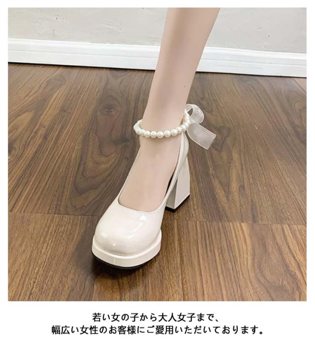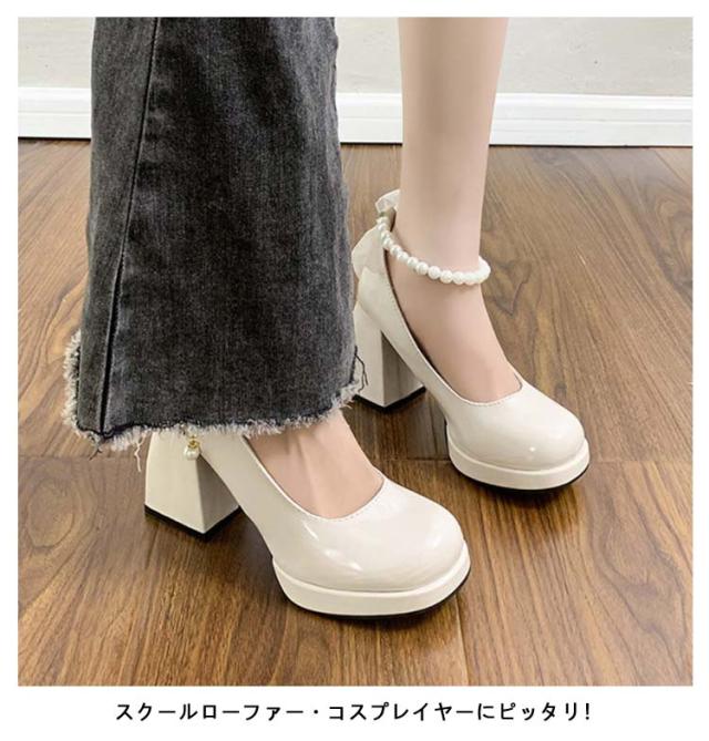 厚底パンプス ローファー 厚底靴 ロリータ靴 メイド靴 レディース おでこ靴 パール 厚底パンプス ロリータパンプス9cmヒール 太ヒール 美脚 通学 学生靴 コスプレ靴 おしゃれ かわいい