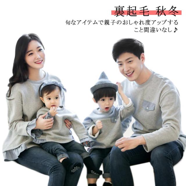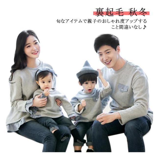 ペア おしゃれ トレーナー ペアルック 親子 厚手 メンズ 長袖 異素材 ストライプ クルーネック 切り替え 長袖 スウェット パーカー かわいい 裏起毛 レディース キッズ 子供服 男の子 女の子 男児 女児 パパ ママ 綿