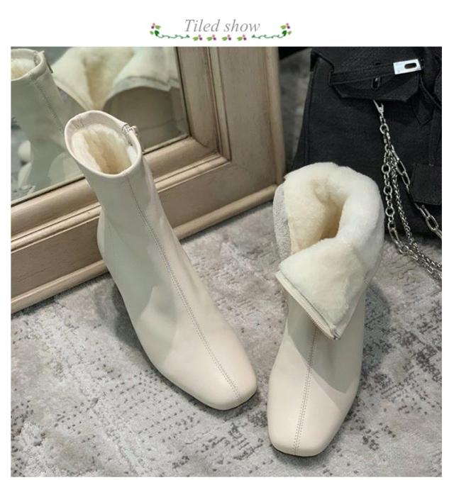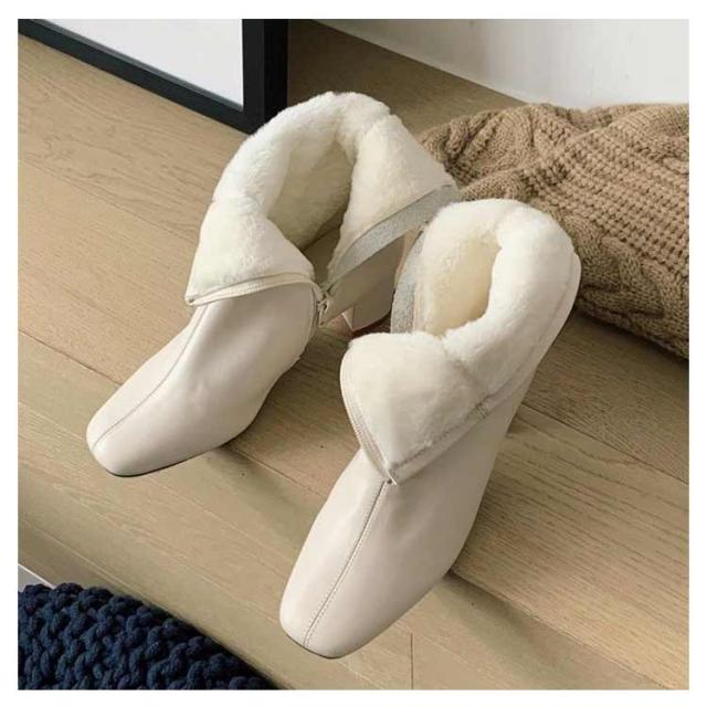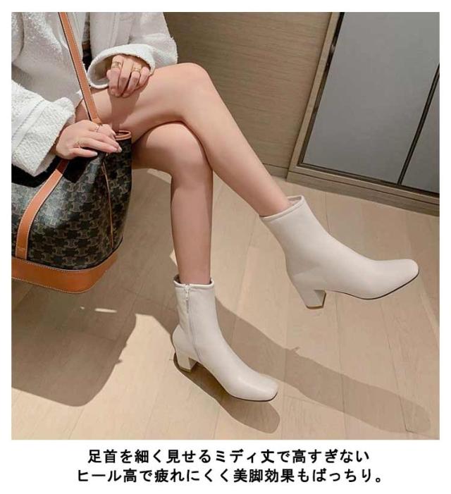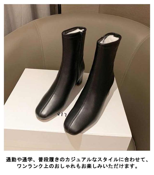 裏起毛スクエアアンクルブーツ 韓国ファッション ブーツ シューズ チャキーヒール スクエアトゥ レディース くつ ショートブーツ ソックスブーツ アンクルブーツ 靴 ミドルヒール レザー 裏起毛スクエアアンクルブーツ バズ 秋 冬 冬小物