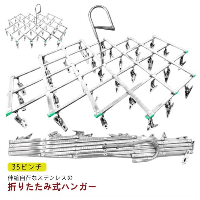 35ピンチ 物干しハンガー 洗濯ハンガー ステンレス 洗濯ハンガー ピンチハンガー ハンガー 多機能収納 伸縮洗濯ハンガー 省スペース 物干し 伸縮ハンガー 伸縮 防風洗濯 伸びる 風通し 臭い 部屋干し 外干し 雨の日 室内干し 便利