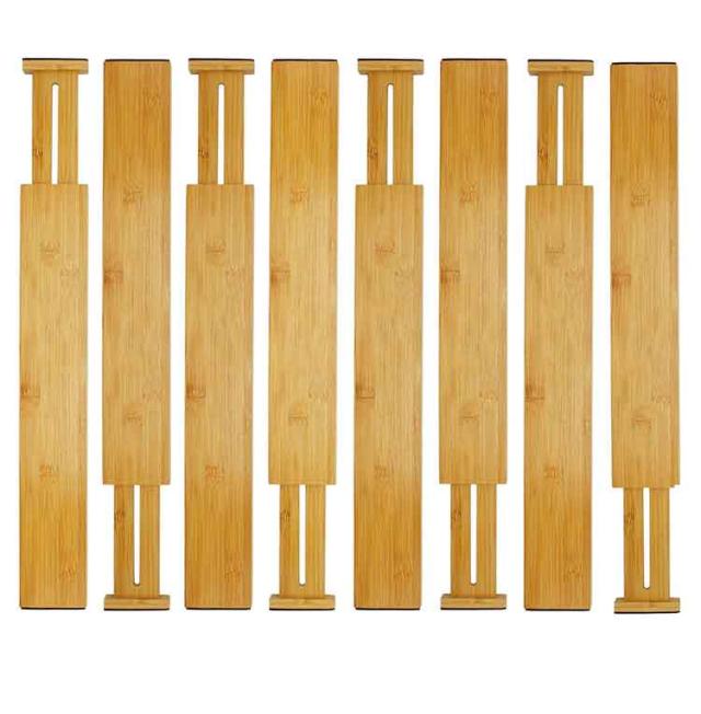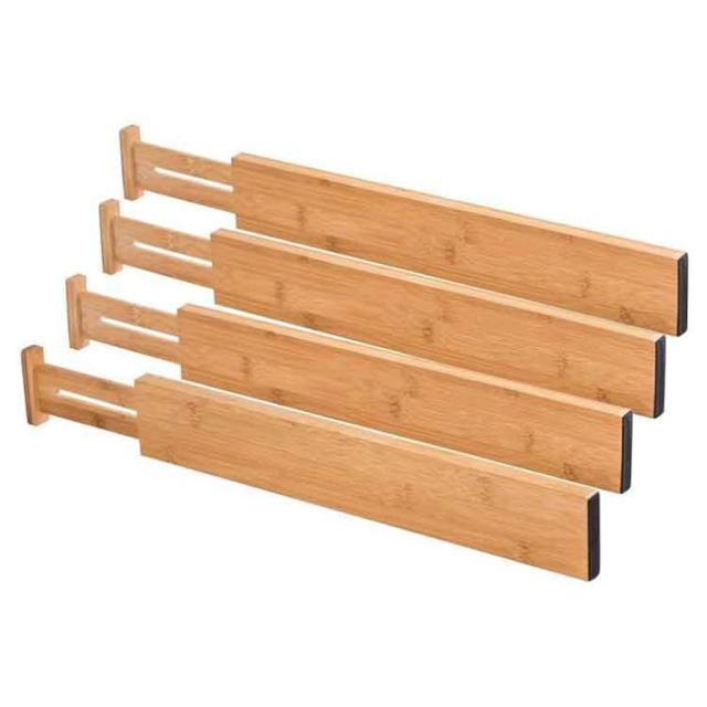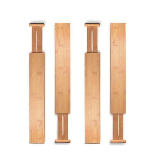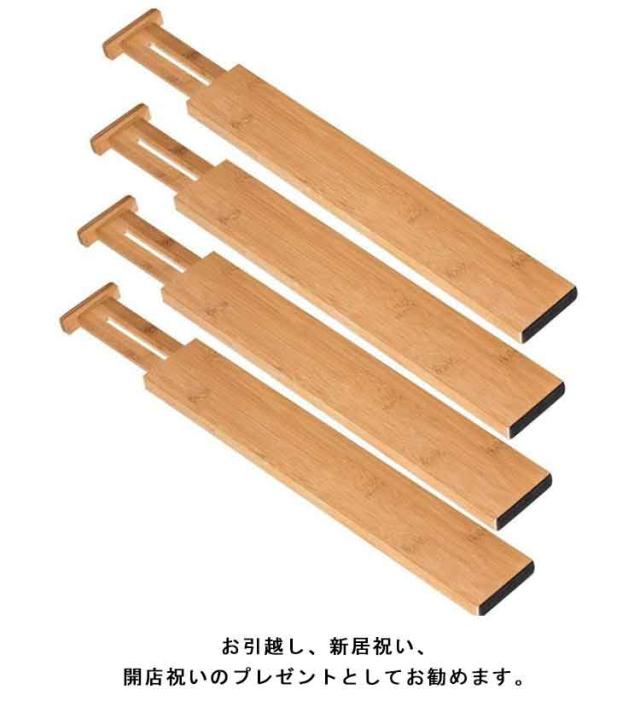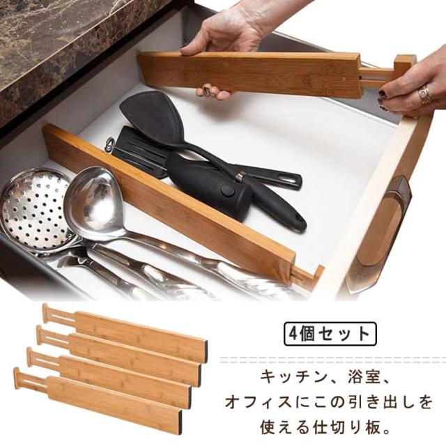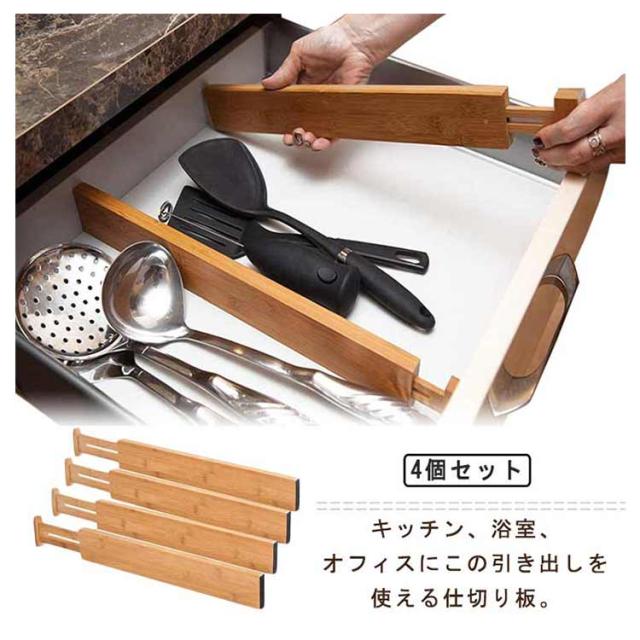 キッチン用 仕切り板 引き出し 竹製 多機能 伸縮式 長さ調整可能 4個セット 本棚 文房具収納 オフィス 家庭用 引き出し 小物収納 下着 靴下 化粧品 食器入れ
