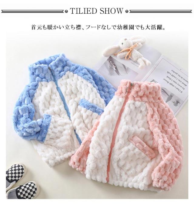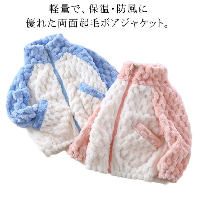 両面起毛 フリースジャケット キッズ ブルゾン スタンドカラー ふわふわ ボアフリース 子供服 ジップパーカー 防寒コート 男の子 ボアコート ジャンパー あったか アウター 女の子 上着 もこもこ 保温 防寒 秋 冬 通学