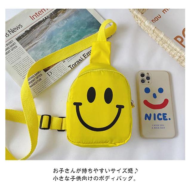 スマイル ボディバッグ ワンショルダー 保育園 キッズバッグ ショルダーバッグ ボディバッグ 笑顔 カバン 鞄 絵文字 小学生 バック 通園 男の子 女の子 斜めがけバッグ 低学年 子供 バッグ キッズ メッセンジャーバッグ 遠足 入学 入園 スマイル バッグ 誕生日