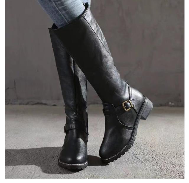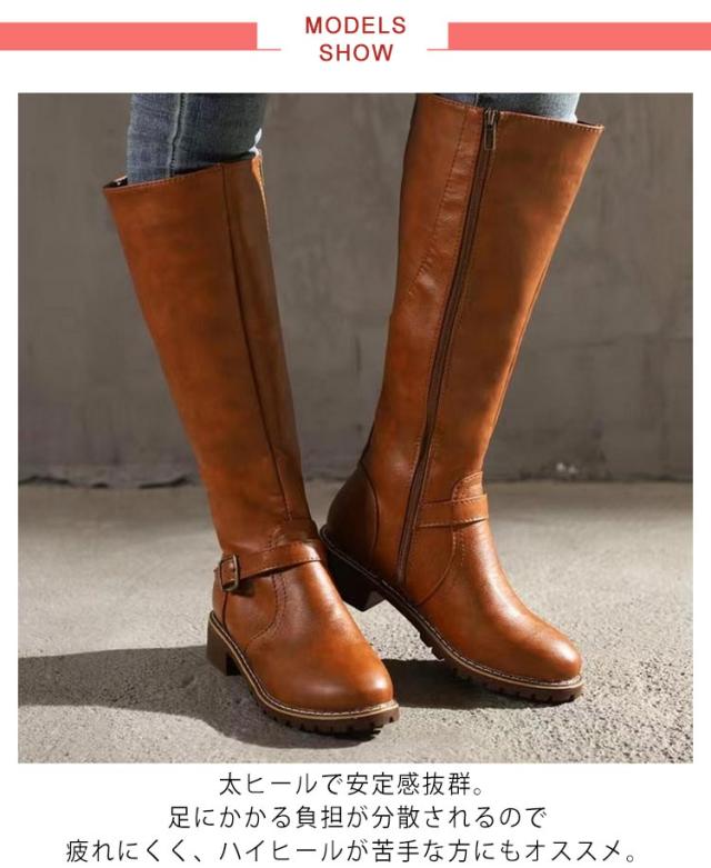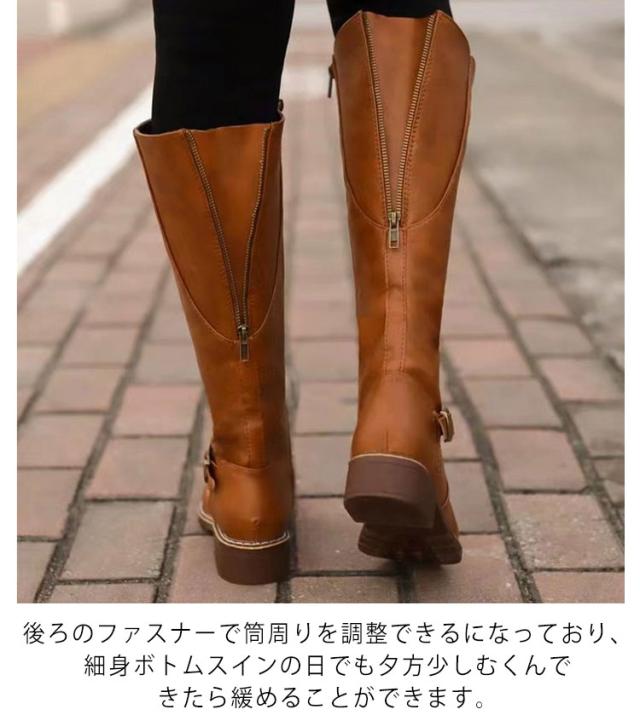 ロングブーツ 筒周り 幅広 大きい レディース ロング ブーツ エンジニアブーツ ふくらはぎ 履き口 ゆったり ブーツ PUレザー ローヒール 太ヒール 痛くない 履きやすい 疲れない ファスナー 柔らかい 歩きやすい 大きいサイズ 美脚 ブーツ 送料無料