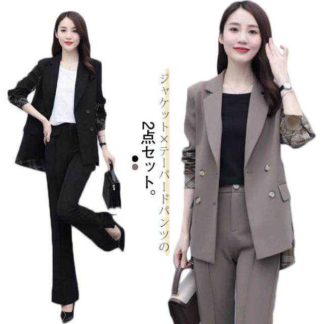 ママスーツ 2点セット 通勤 パンツスーツ 入学式 異素材 レディース 入学式 入園式 卒業式 卒園式 上下セット パンツドレス フォーマル ロングパンツ 冬 テーラードジャケット カジュアル ビジネス セットアップ OL 春 秋 セットアップ 女性