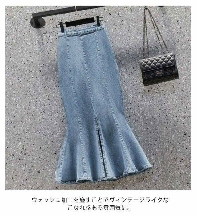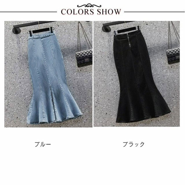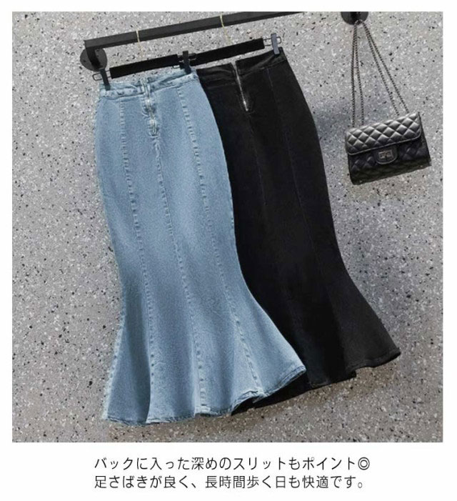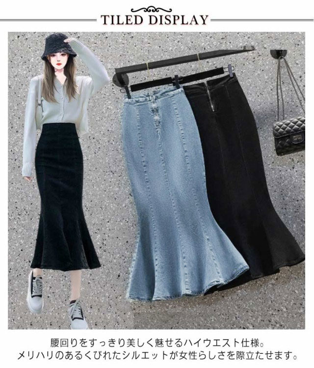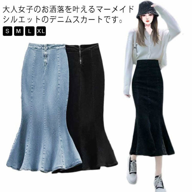 マーメイドスカート レディース 送料無料 デニム ミモレ ロング フレア フレアスカート タイト ハイウエスト Aライン デニム ロングスカート オフィスカジュアル 細見え スカート 春夏 ジーンズ きれい デニムスカート ブラック