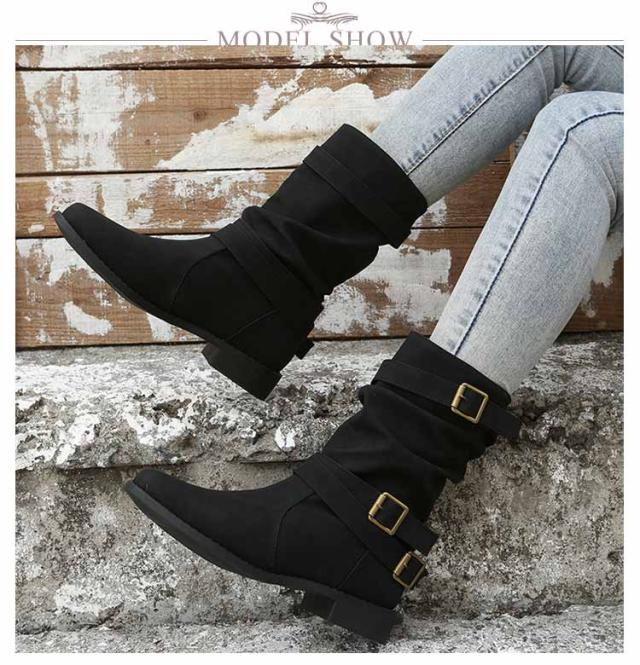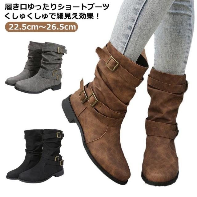 ワイド ショート 歩きやすい ミドルブーツ ブーツ レディース ミドルブーツ ゆったり おしゃれ 防寒 レディース レディースブーツ エンジニアブーツ エンジニアブーツ ワークブーツ 大きいサイズ くしゅくしゅ 疲れない カジュアル 大人 秋ブーツ 秋 冬