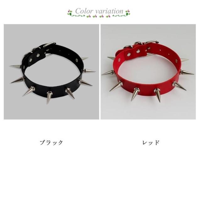 タイト 番犬スパイク フェイクレザーチョーカー ゴシック 首飾り ボンデージ風 レディース 黒色 赤色 ネックレス レッド 送料無料 送料無料 首に巻く 首ベルト SM風 フィット モデル コスプレ 仮装