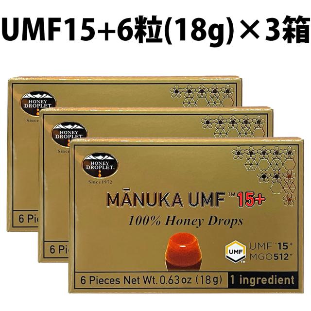 マヌカハニー キャンディ UMF 15+ 3箱 6粒 Honey Japan ハニージャパン ハニードロップレット マヌカ 蜂蜜 はちみつ 飴 のど飴 ドロップ 抗菌 贈り物 喉ケア 活性 自然食 100%成分マヌカハニー のどあめ ニュージーランド産 マヌカハニー100% 喉 MANUKA 6粒入 umf15+