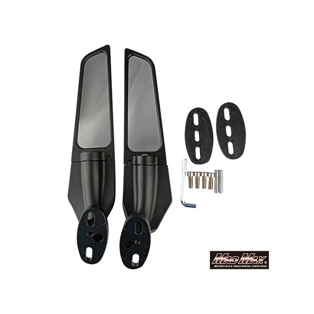 マッドマックス 汎用 バイク用 アルミ製 カウリングミラー Mサイズ 左右セット(ブラック) MADMAX
