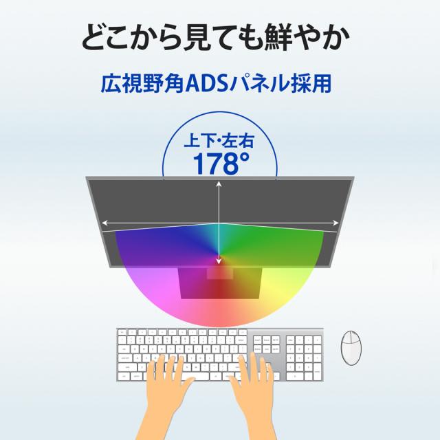 バックライトのちらつきをなくした「フリッカーレス」や、ディスプレイ本体でブルーライトを低減させる「ブルーリダクション2」など目に優しい機能も搭載。また、3辺フレームレスパネルを採用しており、マルチディスプレイにも最適です。HDMIケーブルも付属しているのでご購入後すぐにご使用いただけます。