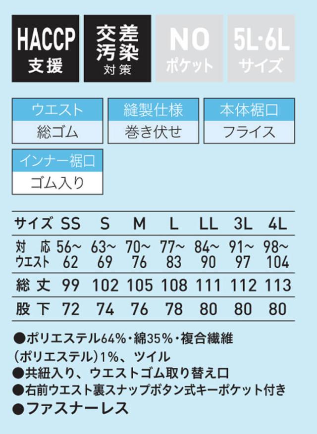 食品工場白衣 ホッピングパンツ FHP856 FHP858 FHP859 男女兼用 サーヴォ SERVO フードファクトリー 常温作業向け 制服 ユニフォーム