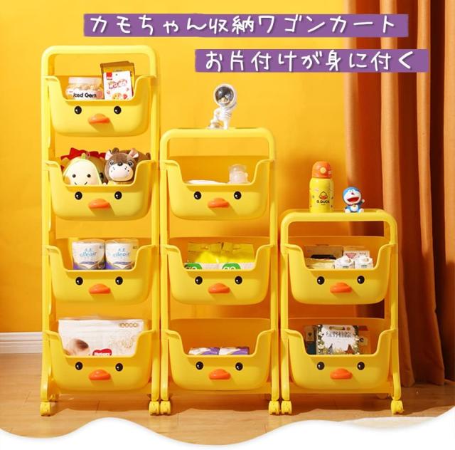 収納ワゴン ラック アヒル4段 おもちゃ 乳児 キッズ キャスター付き ストッパー付き 大容量 25.5×39.5×123.5センチ ポリプロピレン 子供部屋 整理 整頓 お片付け 蓋あり ym514-1