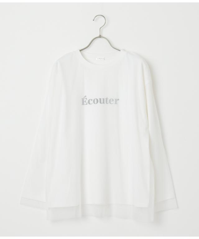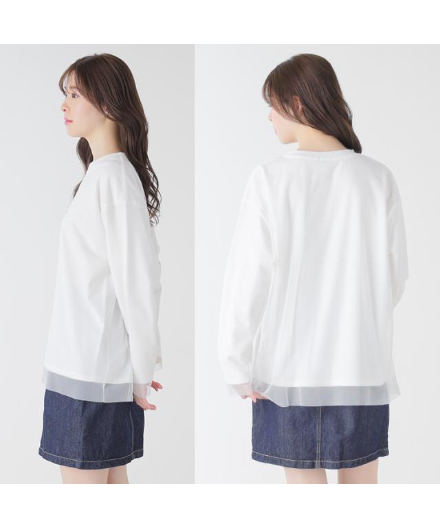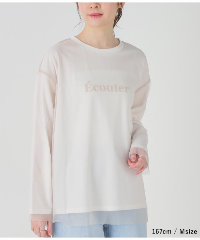 トップス Tシャツ カットソー ロンT ロゴT 長袖 綿100% カジュアル 白 黒 SALE Honeys ハニーズ チュール重ねTシャツ