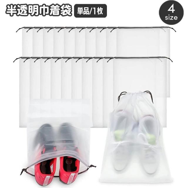 旅行用巾着袋 シューズバッグ ビニール袋 単品 1枚 半透明 簡易靴袋 旅行用収納袋 収納袋 おもちゃ収納 衣類 靴 下着 整理