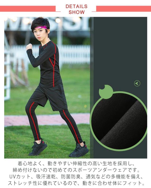 | 裏起毛あり/なし2タイプ キッズ用スポーツアンダーウェア 着心地よく、動きやすい伸縮性の高い生地を採用し、締め付けないので初めてのスポーツアンダーウェアです。UVカット、吸汗速乾、防菌防臭、通気などの多機能を備え、ストレッチ性に優れているので、動きに合わせ体にフィット。 縫い目をフラットに縫製することで快適な肌触りを実現します。ボディー全体をマッサージでき、疲労感から解放されます。 通気性が良く、抜群な速乾性という特徴で、水や汗などの冷却による体の冷えを軽減し、快適性を保ちます。子供が汗をかいても風邪を引く心配はありません。 夏場は汗をかいても快適でインナーとして使えば冬場の防寒対策にもなります。一年中にスポーツウェアのアンダーとして活躍します。ランニングやスポーツ、運動を快適に楽しめます。 野球、卓球、バレーボール、テニス、バスケット、サッカー、体操、スキー、ジョギング、ゴルフ、登山、自転車などのスポーツも、日常にも適す。 | |