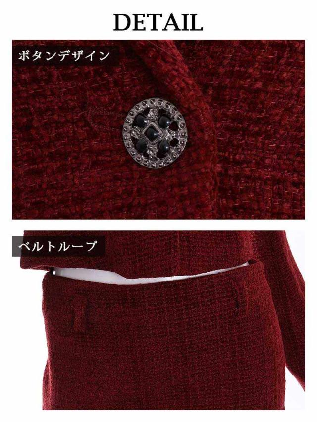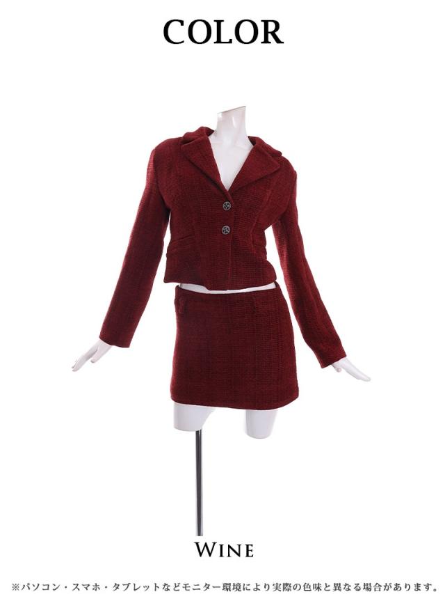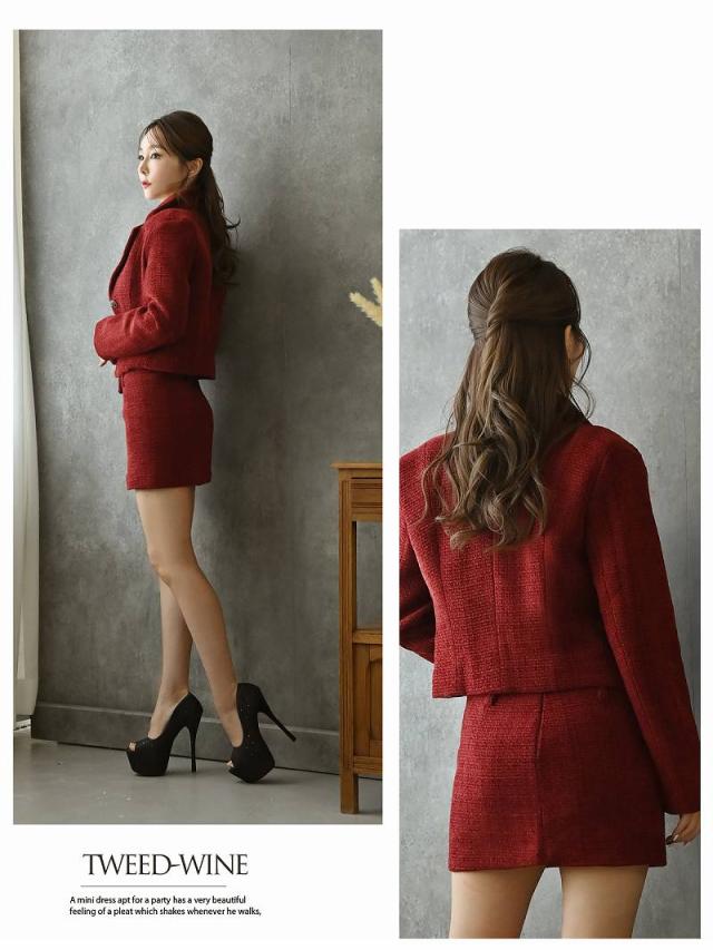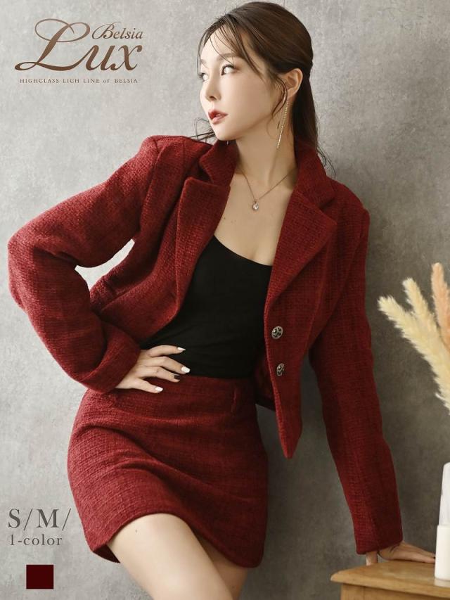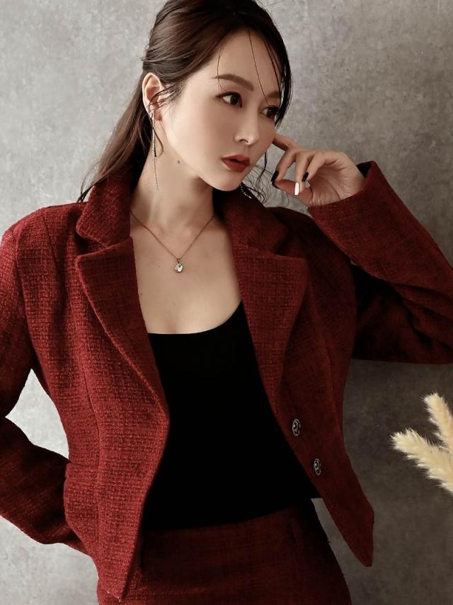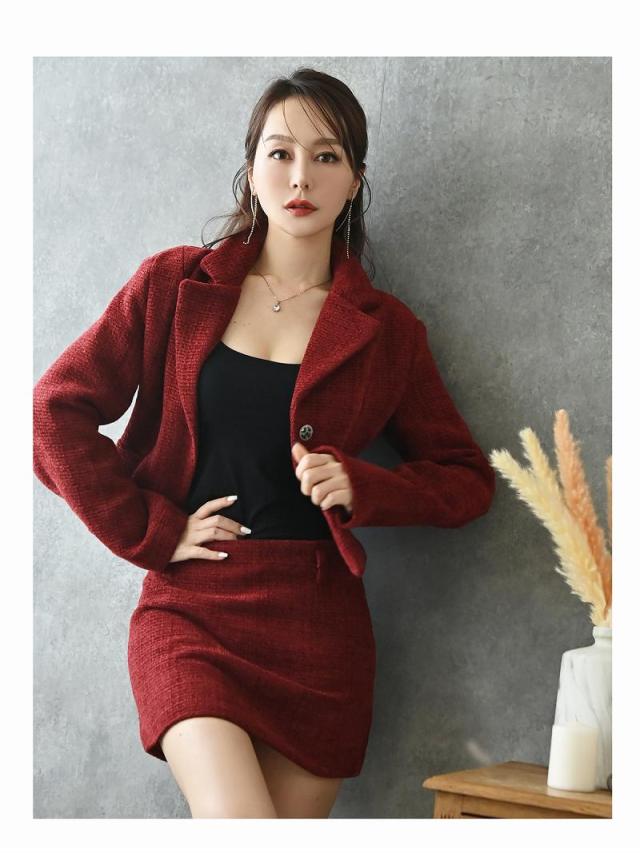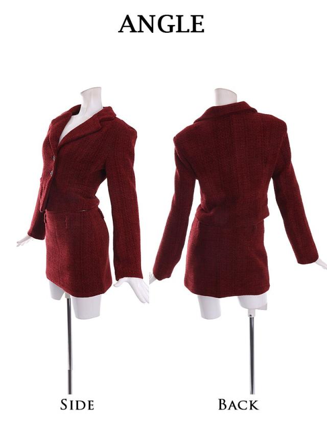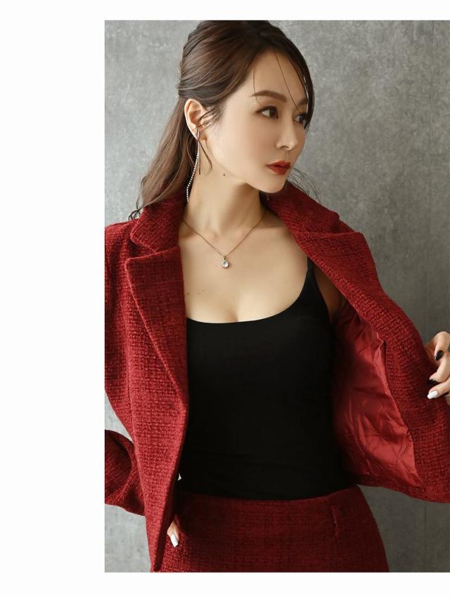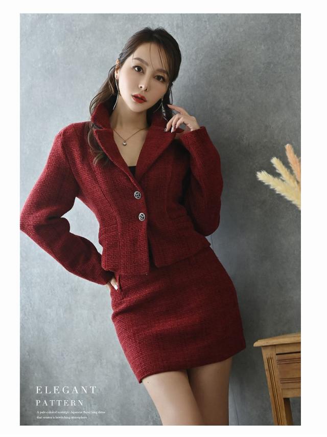 ☆赤色のツイードスーツは珍しくキャバクラやラウンジ・クラブはもちろんコンパニオンスーツとしても着用できる夜職スーツ。