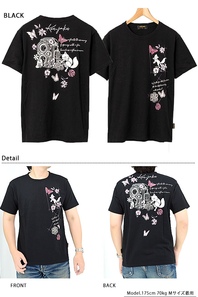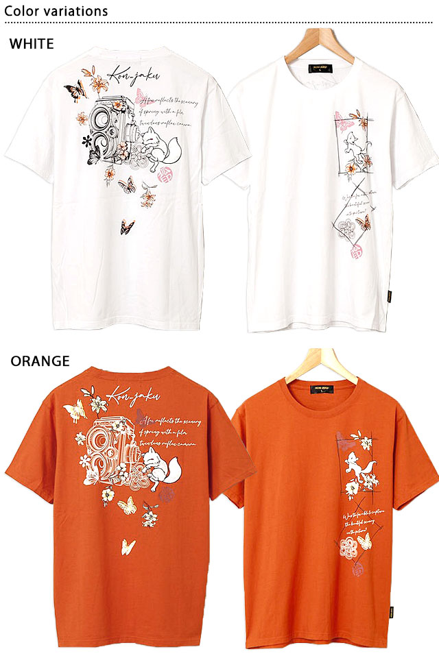 「クラシカルな二眼レフカメラ」半袖Tシャツ 今昔 KJ-29183 和柄 和風 狐 キツネ きつね ユニセックス こんじゃく