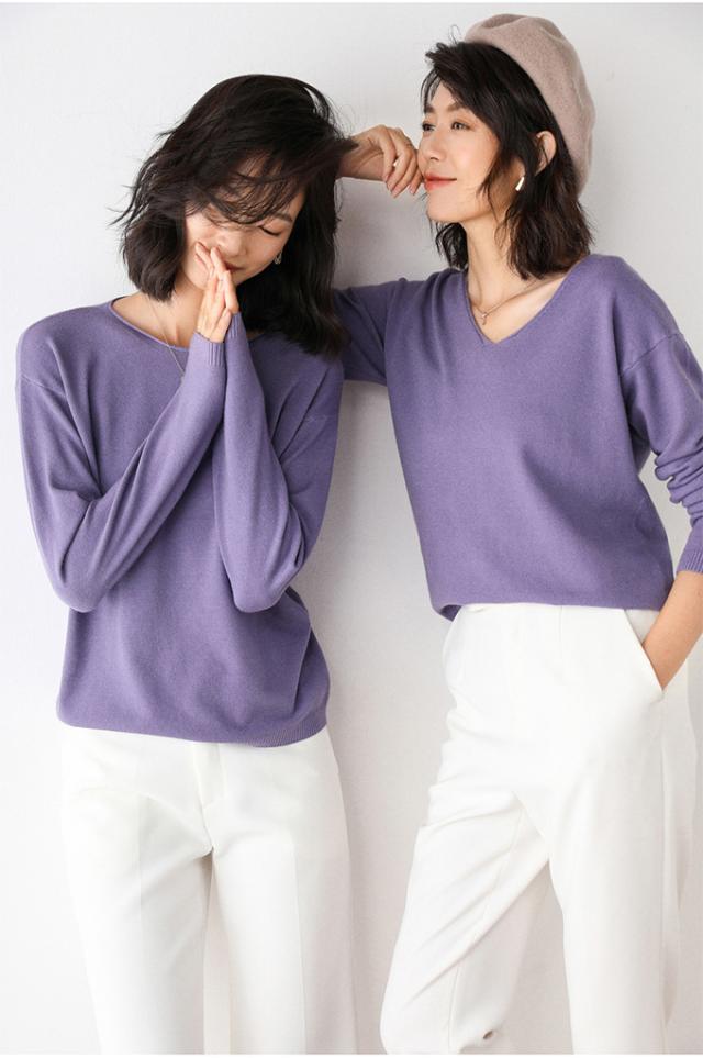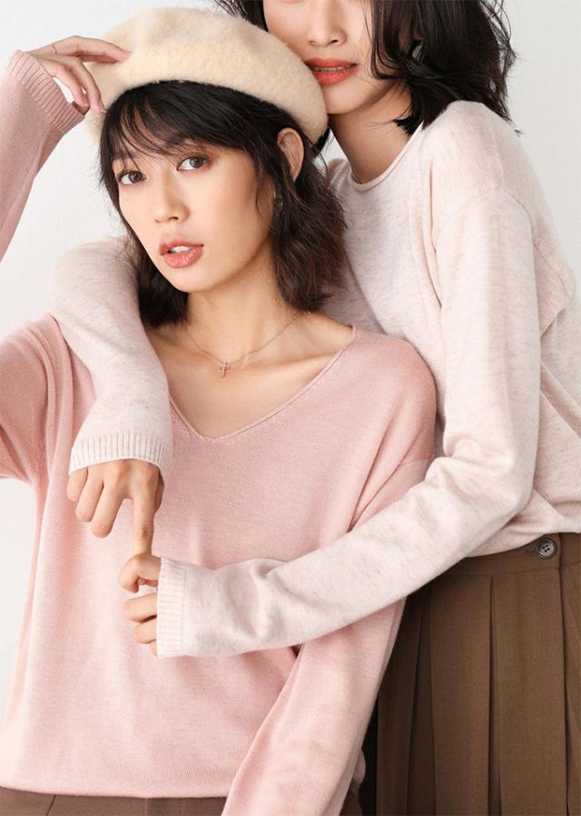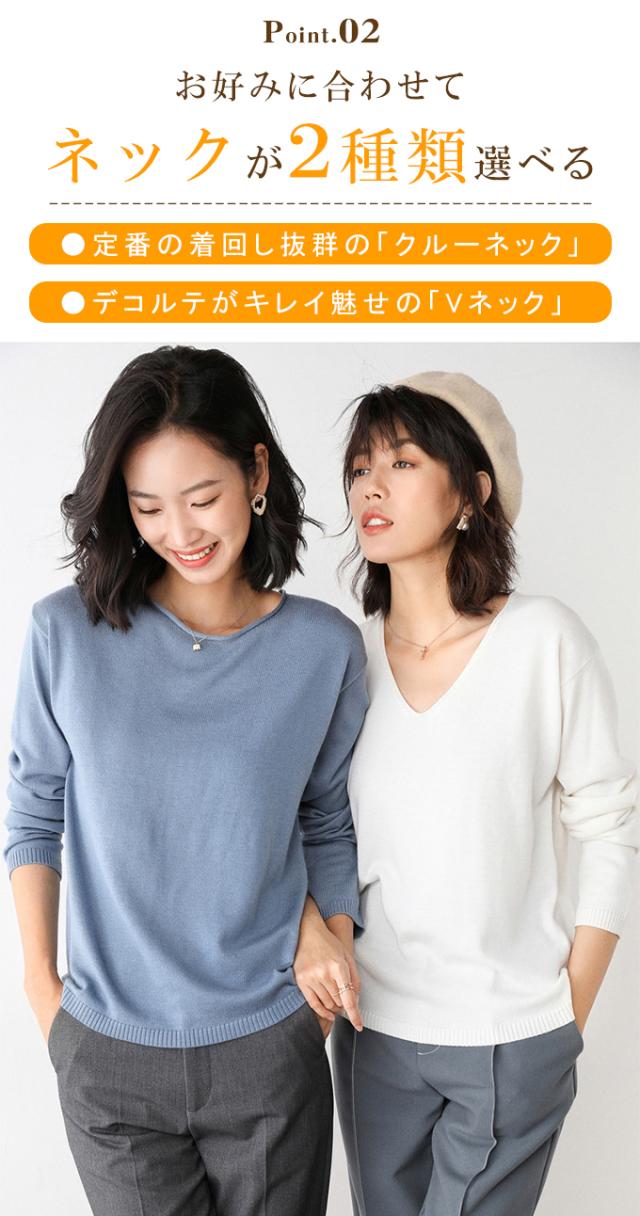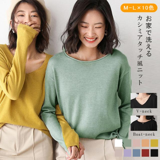 半額クーポン配布中、990円、春カシミヤタッチ風ニット ストレッチニットセーター クルーネック Vネック インナー 長袖 丸首 キレイ オシャレ 柔らかい 快適 通勤 お出かけ オフェンス カジュアル レディース ちくちくにしない