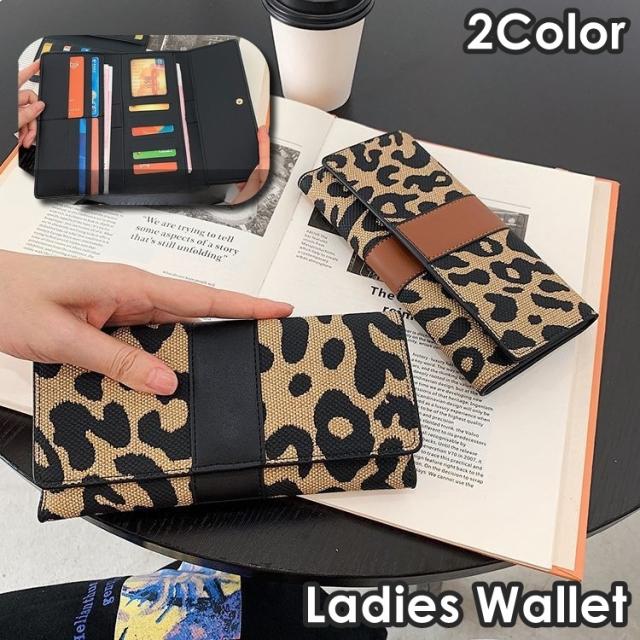 長財布 レディース 女性 婦人 ウォレット さいふ 長方形 三つ折り スナップボタン ヒョウ柄 アニマル柄 クール 派手め フェ