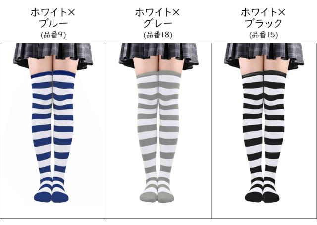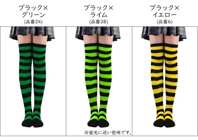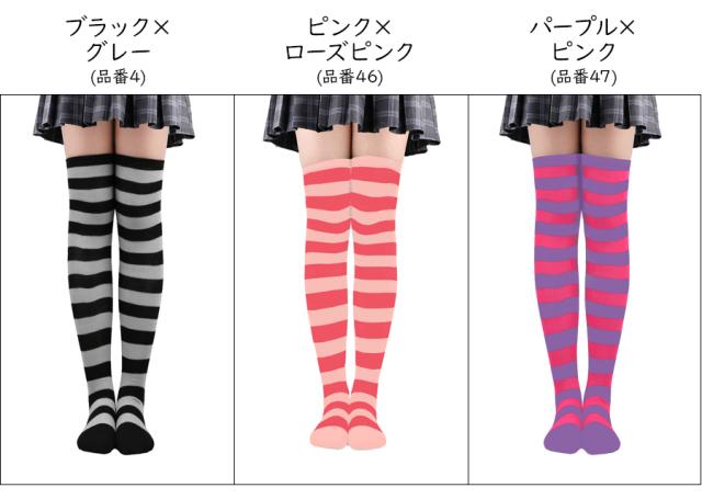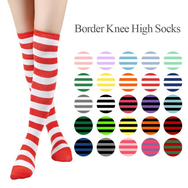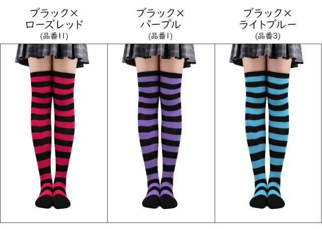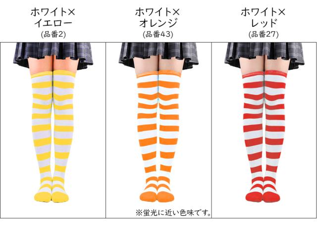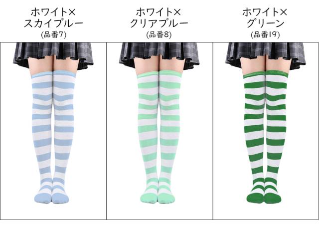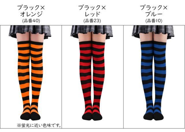ボーダー ニーハイ ソックス カラバリ25色 レディース ファッション 靴下 オーバーニーソックス サイハイ コスプレ 衣装 コスチューム メール便送料無料