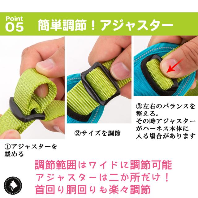 ※ハーネス抜けの経験犬や後ずさり、暴れる犬には不向きな商品です。