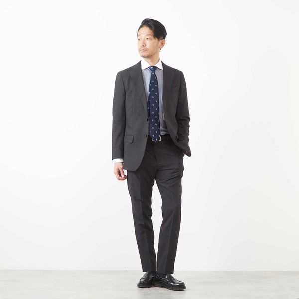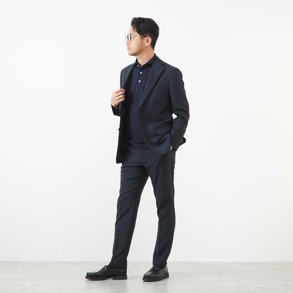 クラシカルでモダンな佇まいを感じさせる機能素材のスタイリッシュスーツです。